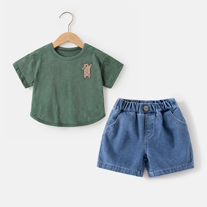 夏季卡通短袖短裤套装儿童百搭休闲上衣牛仔套装韩版t恤两件套