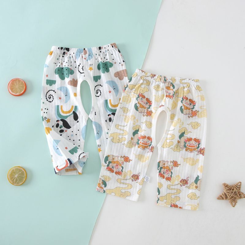 2件装婴儿纯棉薄款交叉裆开裆裤宝宝男女童外穿七分裤短裤夏季宽