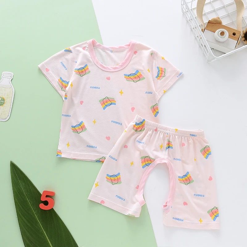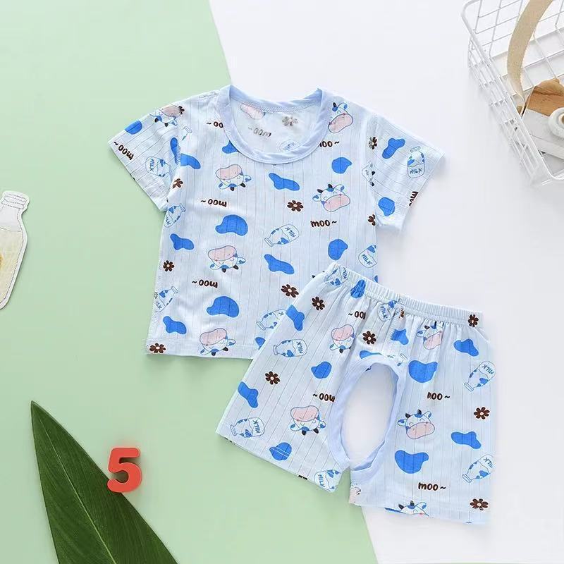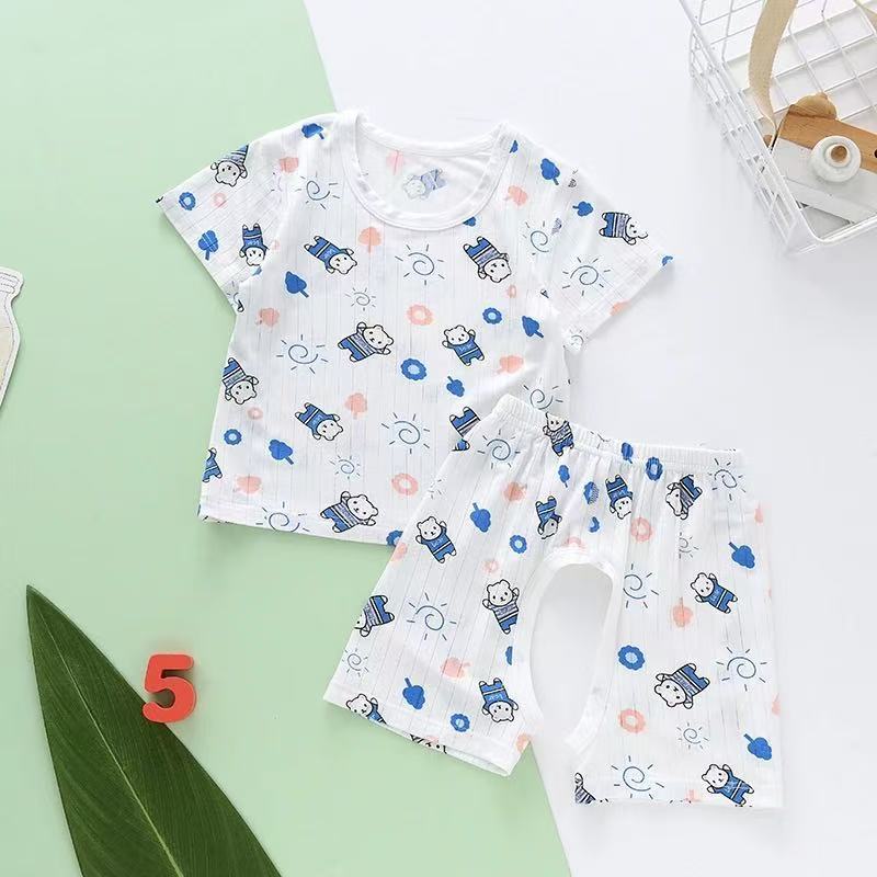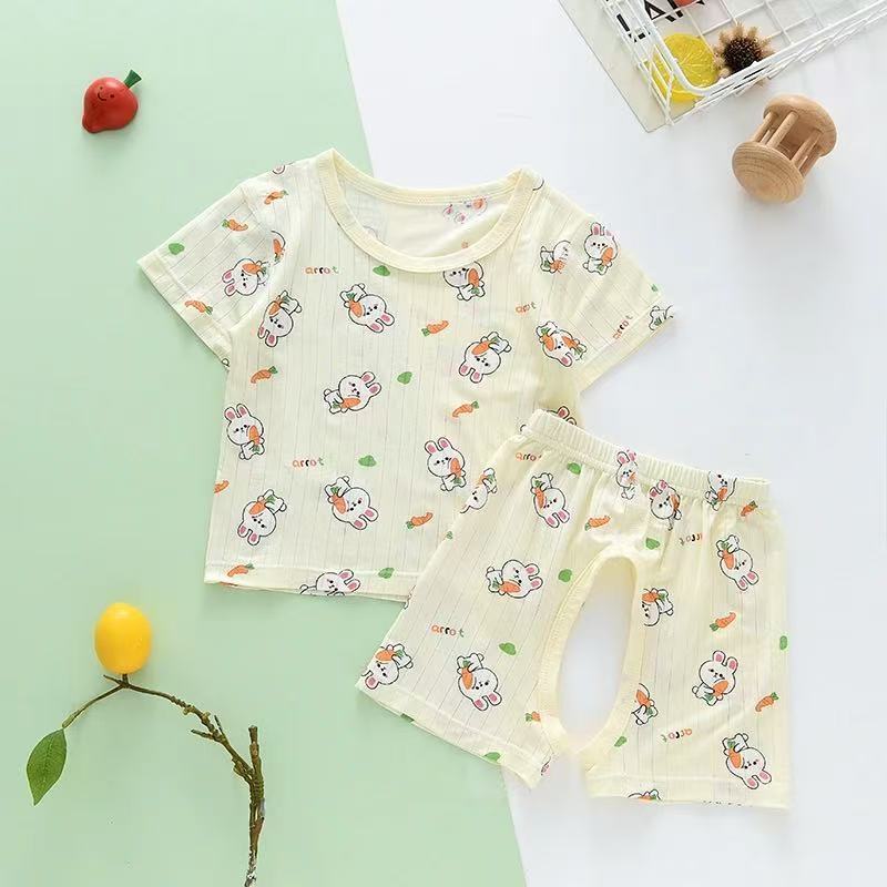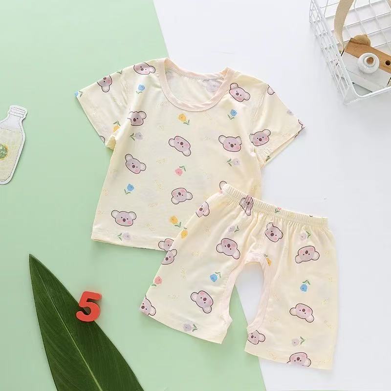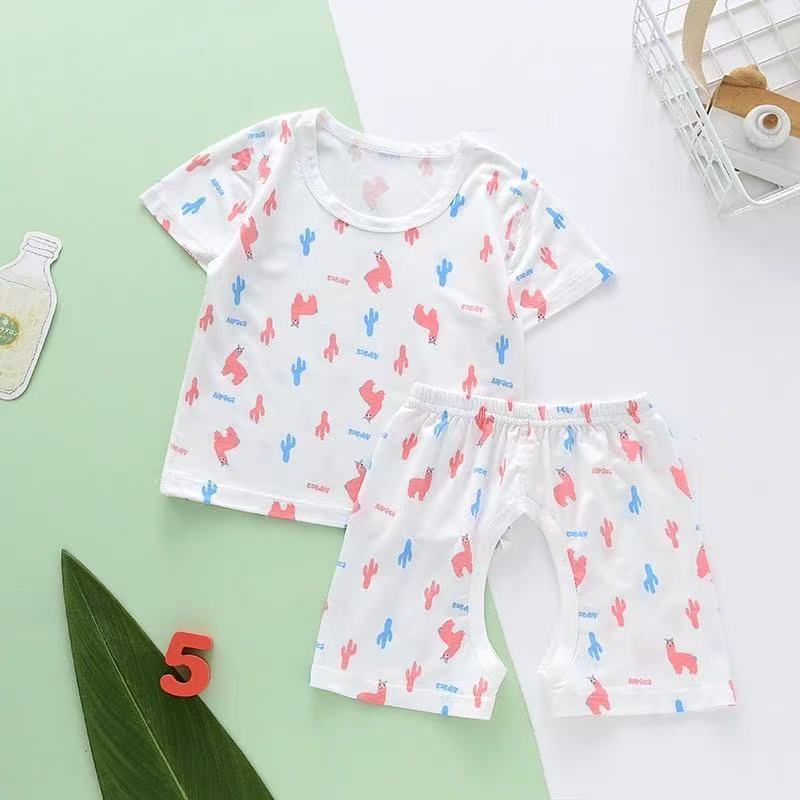 儿童套装夏家居服薄款莫代尔短袖T恤开裆裤套男女童空调服两件套