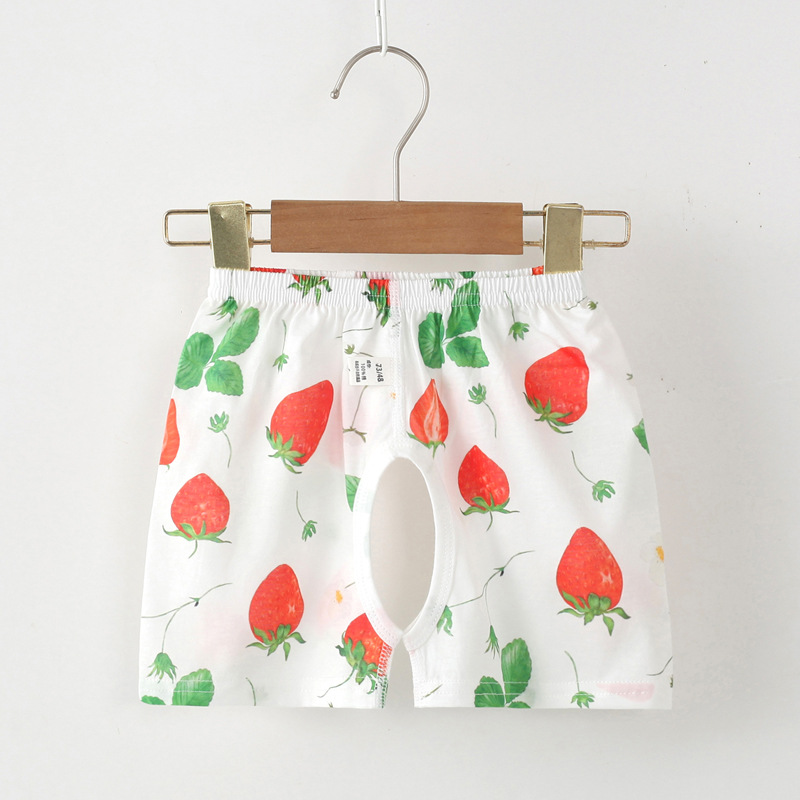 婴儿短裤女夏季纯棉男宝宝开裆裤薄款1-3岁童夏装无骨五分短裤
