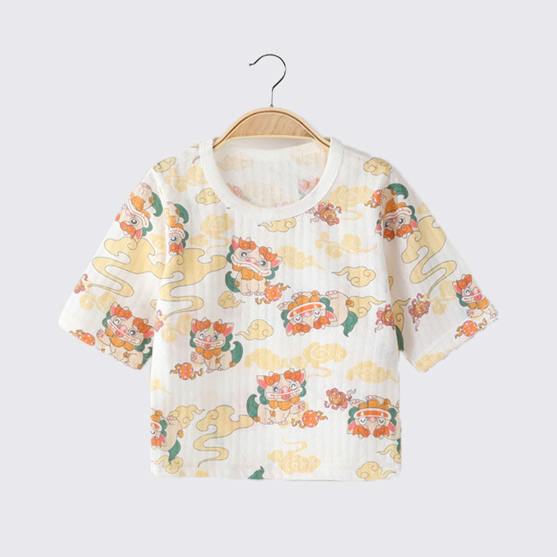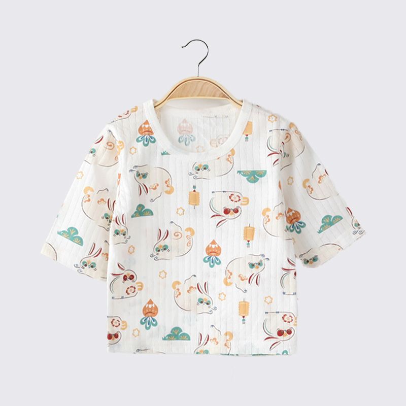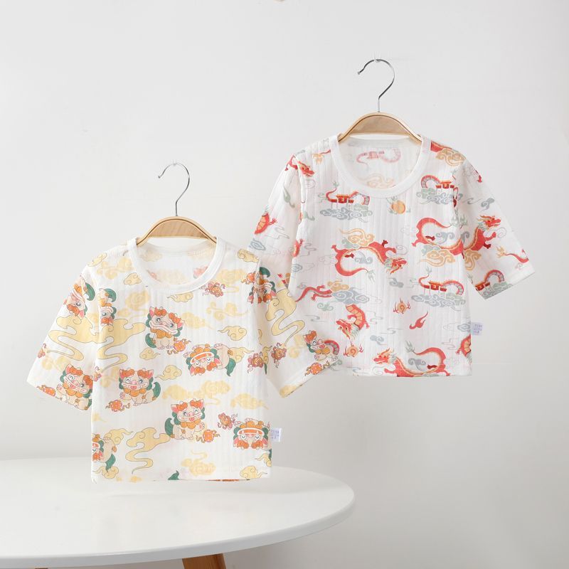 婴幼儿薄款上衣夏季衣服纯棉宝宝中袖睡衣男女童空调服五分袖上衣