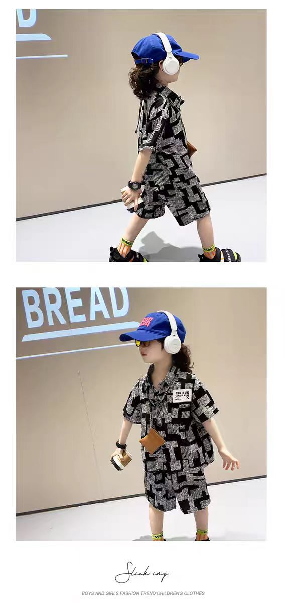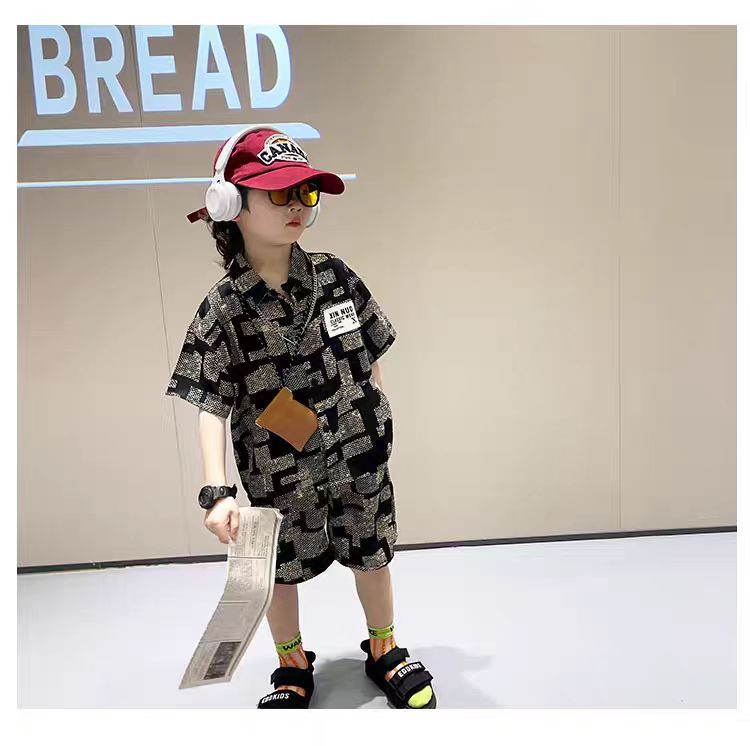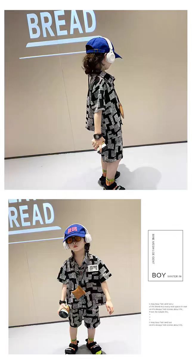 男童夏季雪纺短袖套装2025新款儿童装轻薄款衣服潮宝宝宽松两件套