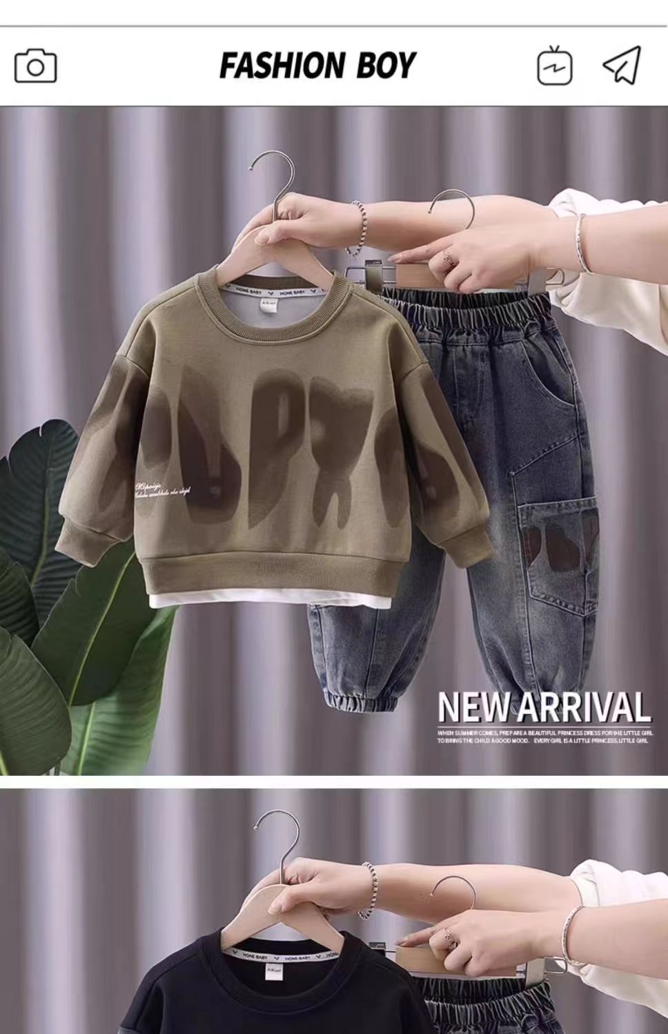 男童中小童套装秋冬款2025新款儿童洋气时髦加绒卫衣男孩帅气休闲