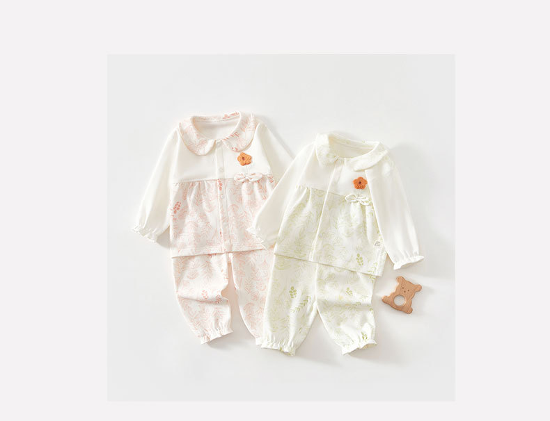 婴儿衣服春秋季分体套装女宝宝打底外穿贴身无骨可爱爬爬服家居服