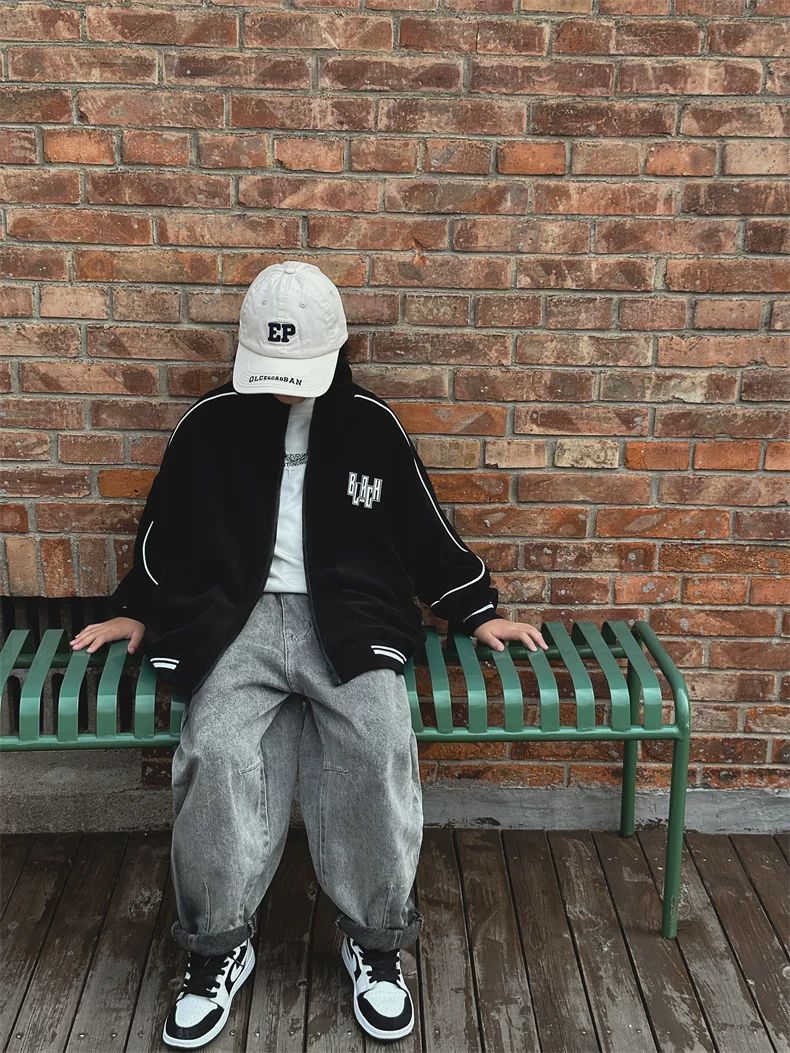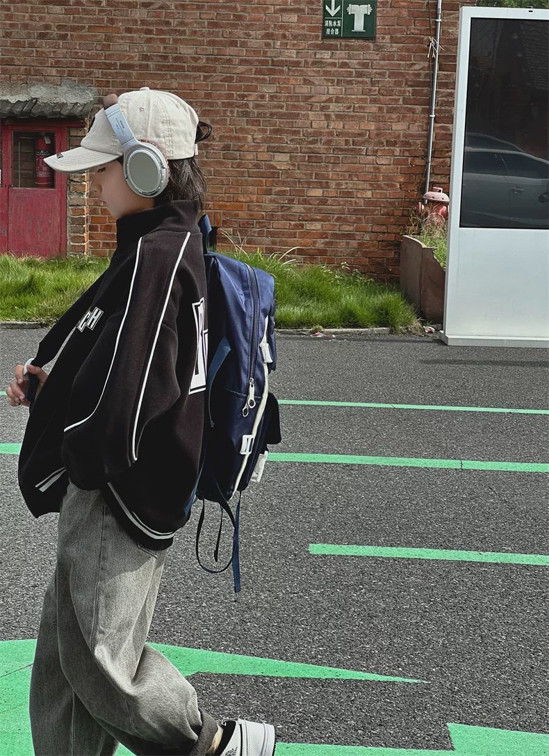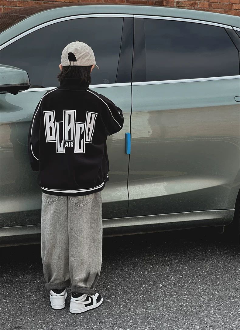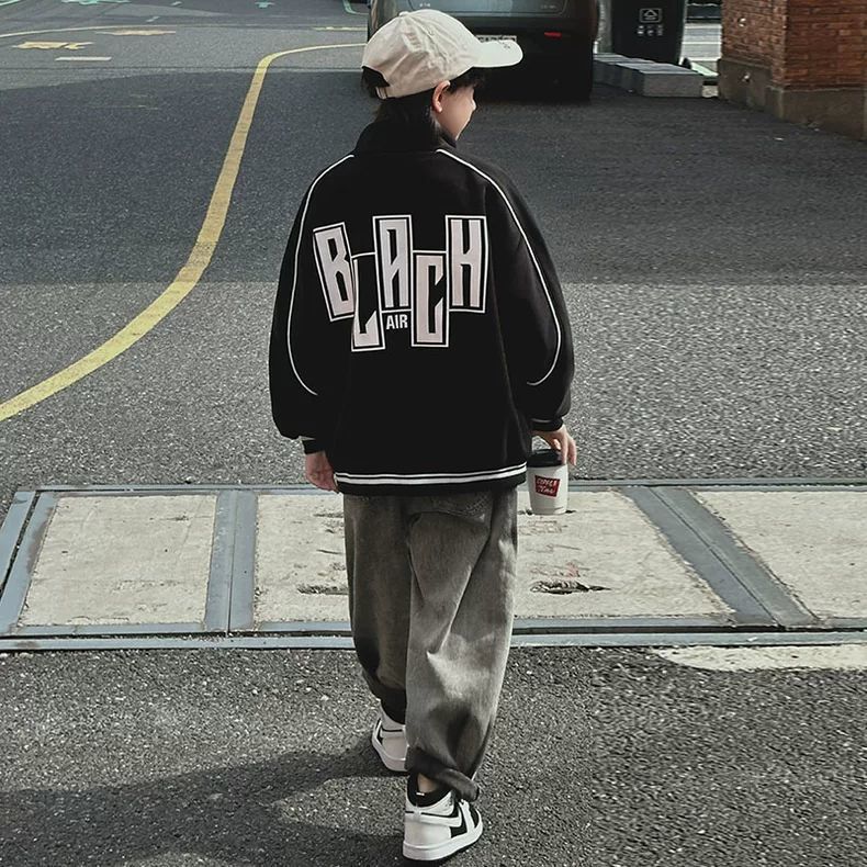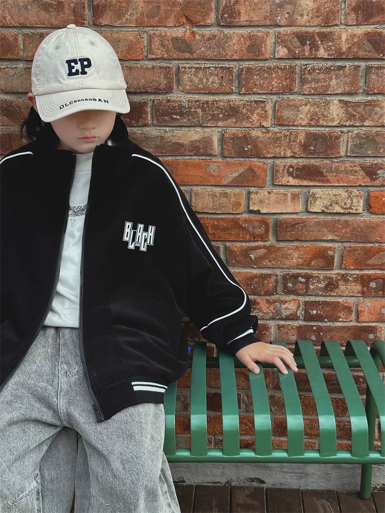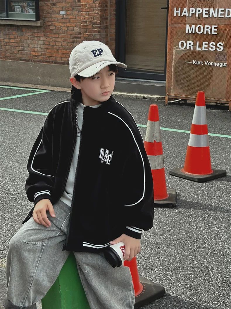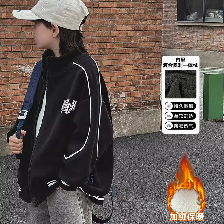男童中大童装一体绒黑色高领加绒秋冬款外套儿童2025新款休闲冬装