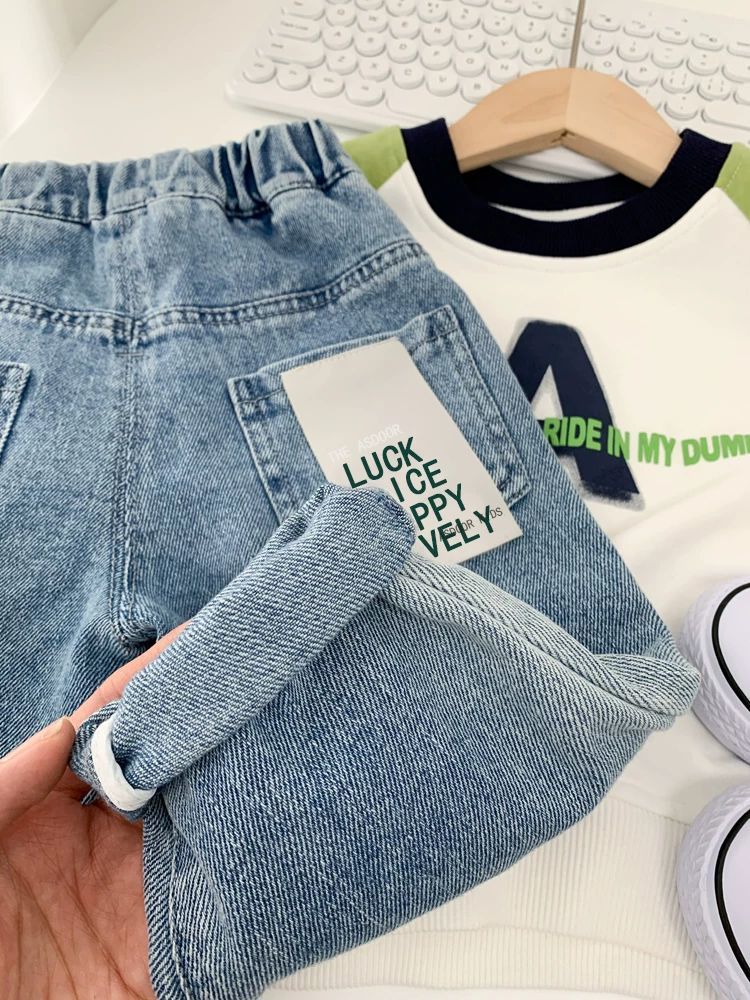 男童春秋款2025新款裤子洋气宝宝秋装长裤儿童帅气潮牌时尚牛仔裤
