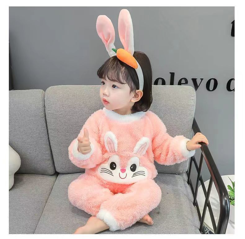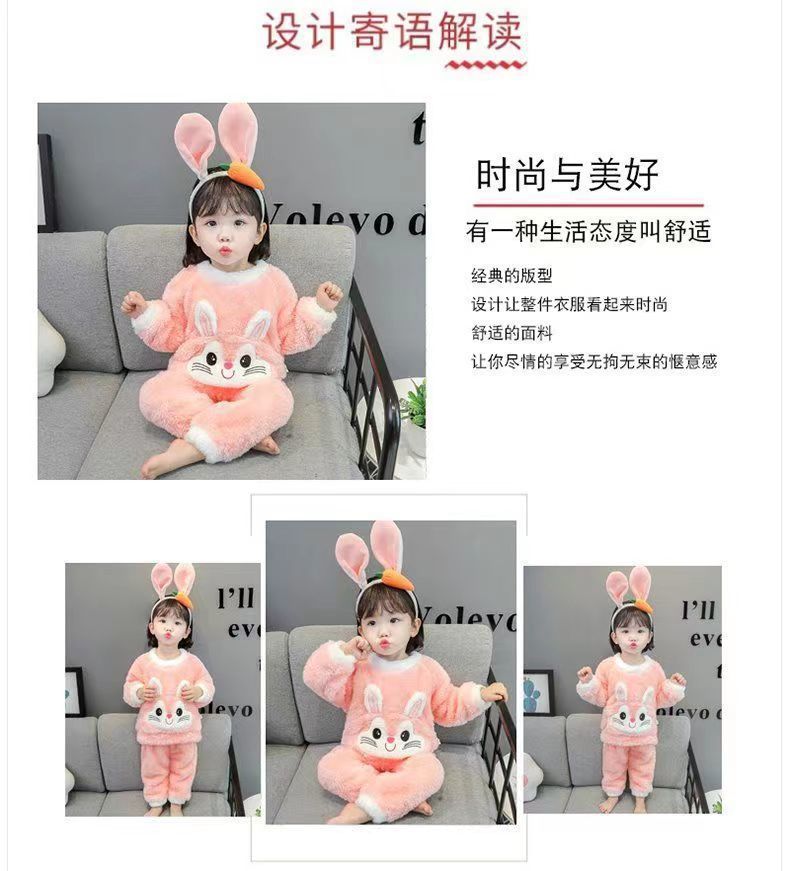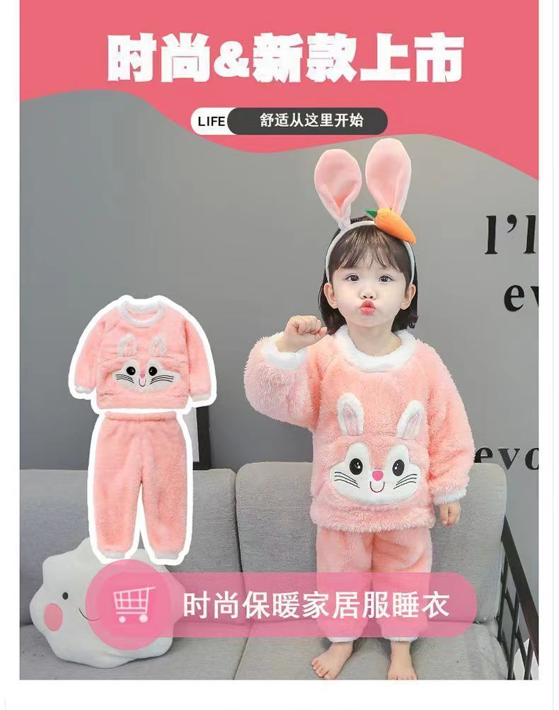 女童睡衣法兰绒宝宝睡衣儿童秋冬家居服长袖套装加厚绒保暖两件套