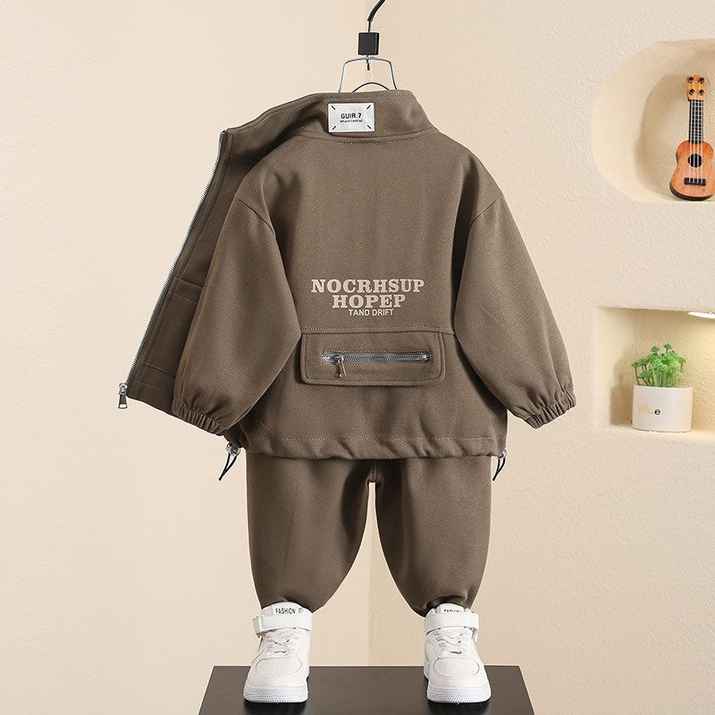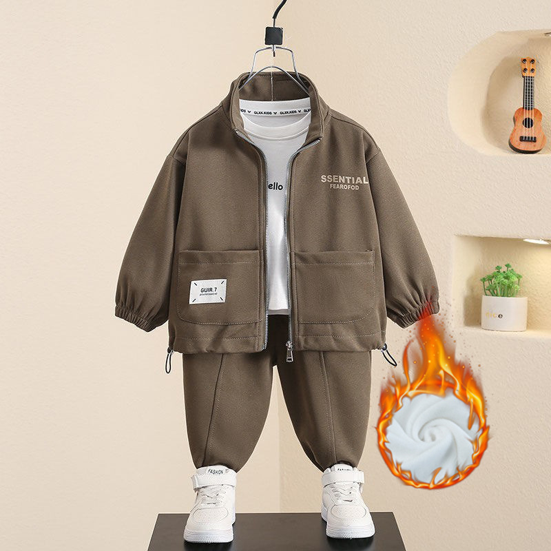 男童加绒两件套装2025新款洋气男宝宝秋冬款运动衣服儿童休闲外套