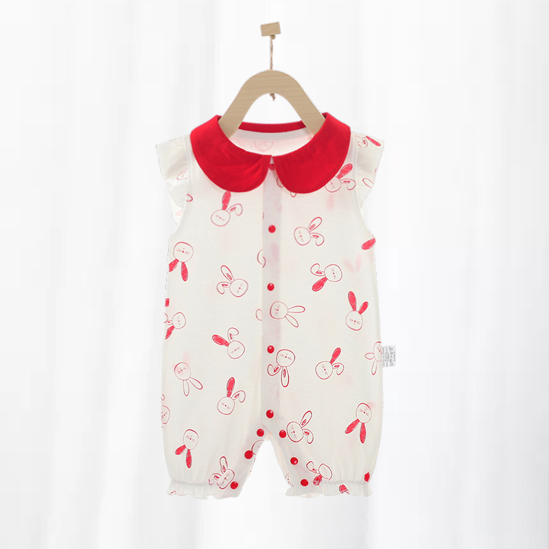 夏款女宝宝短袖连体衣夏季薄款半袖哈衣夏装外穿超萌可爱女孩爬服