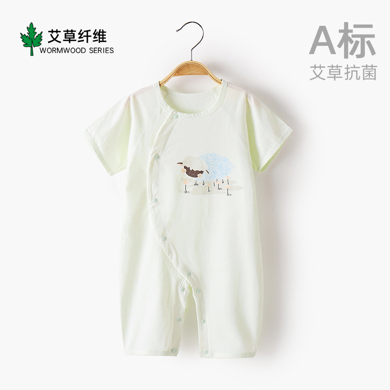 婴儿短袖连体衣艾草薄款衣服新生宝宝睡衣空调服哈衣爬爬服宝宝夏
