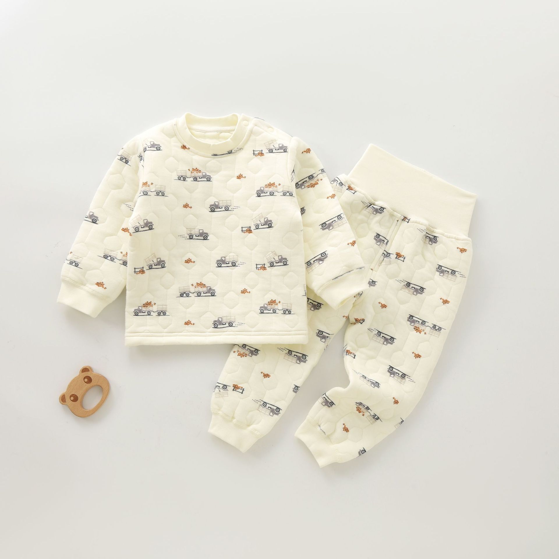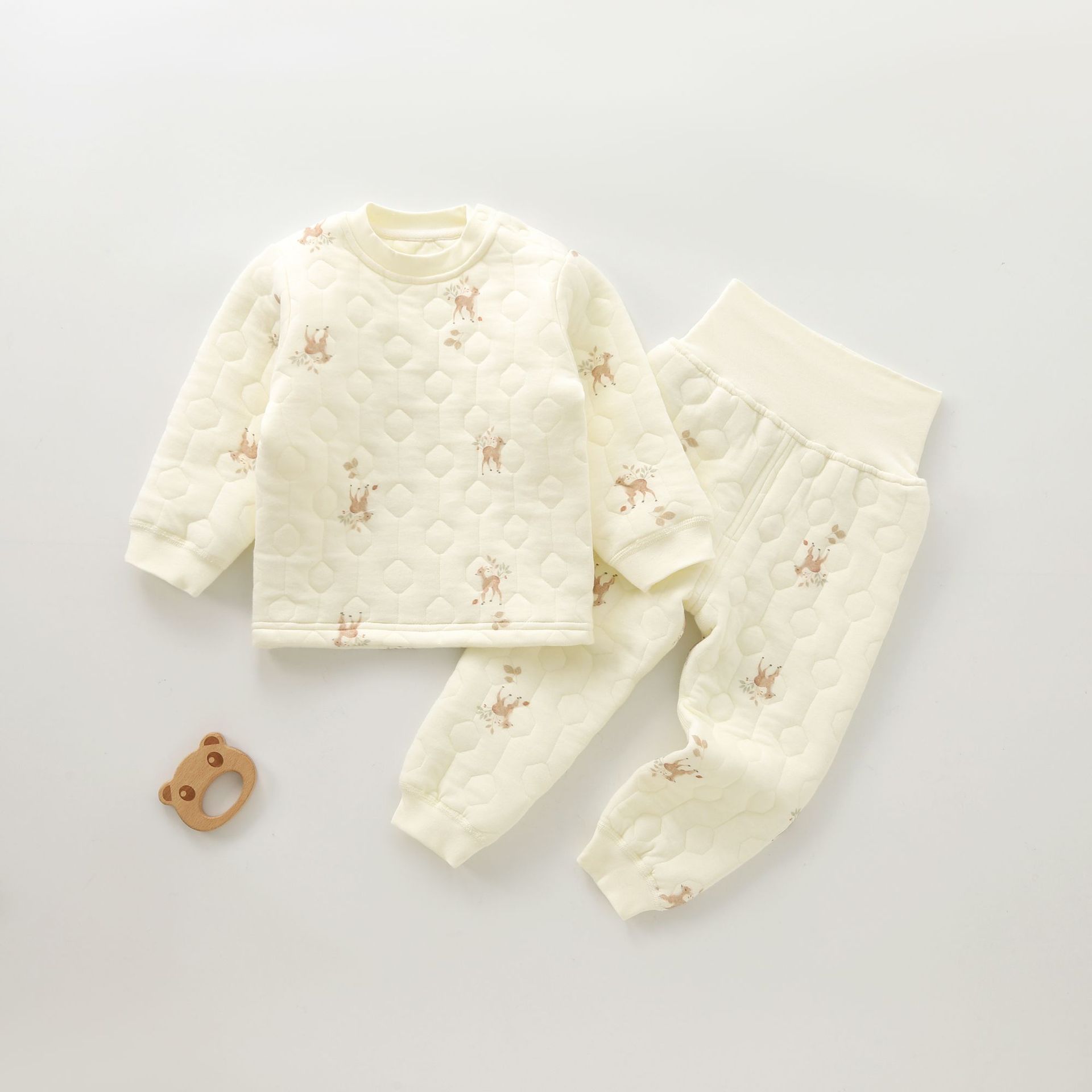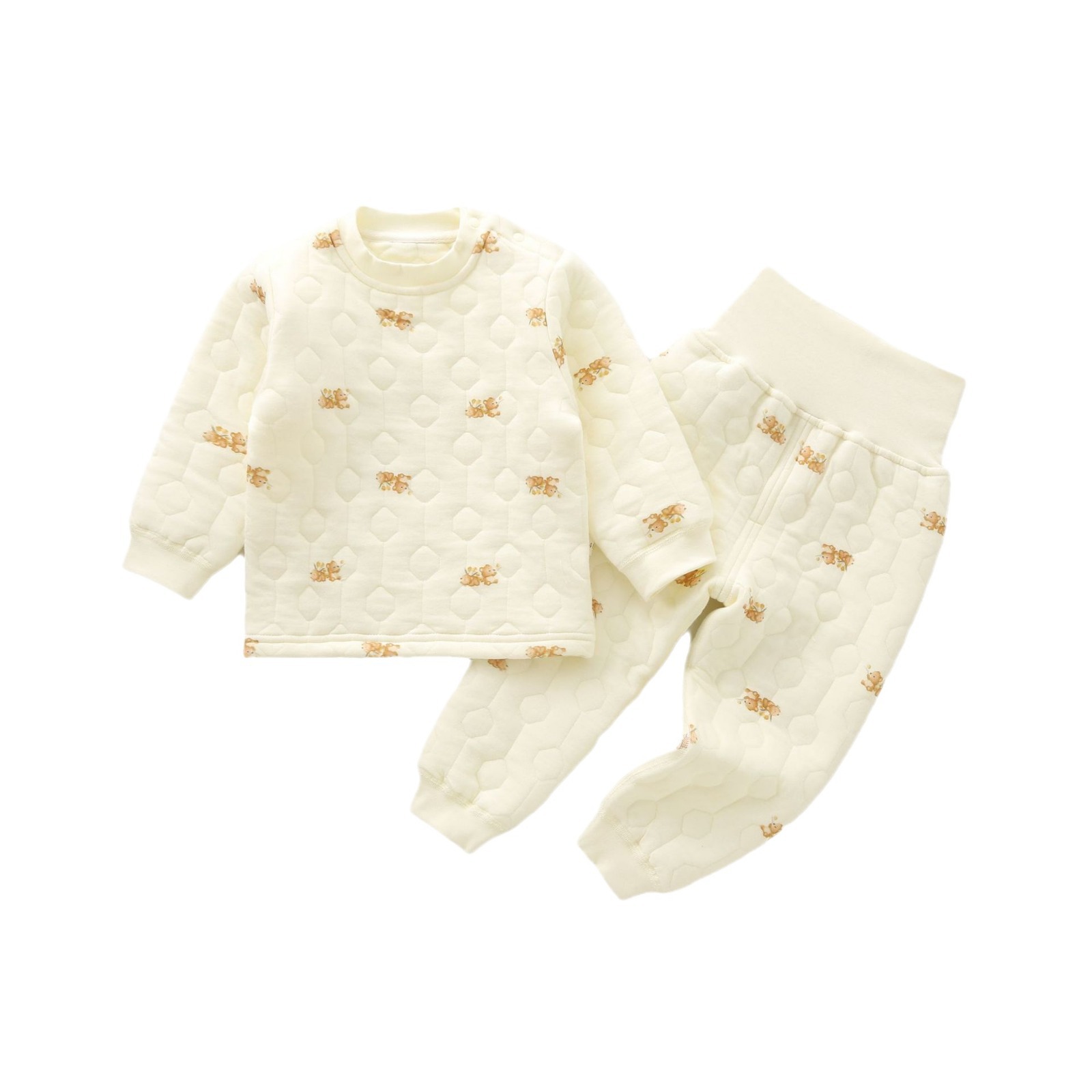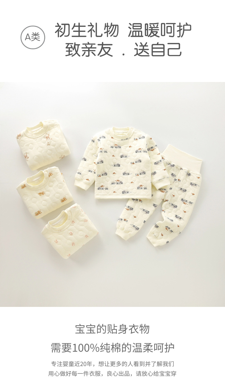宝宝高腰护肚套装秋冬季三层保暖婴儿小童秋衣秋裤保暖内衣打底