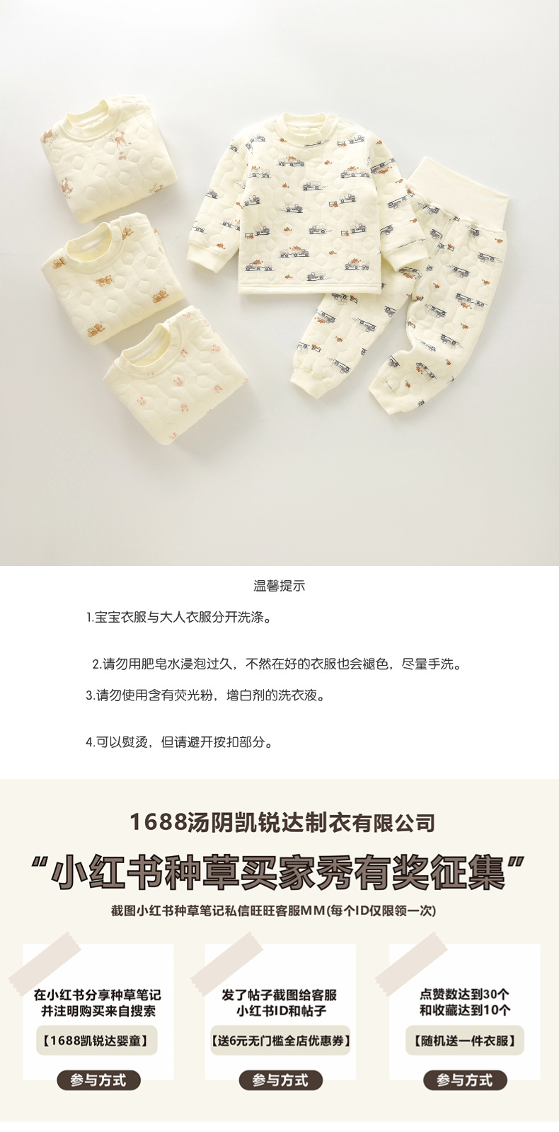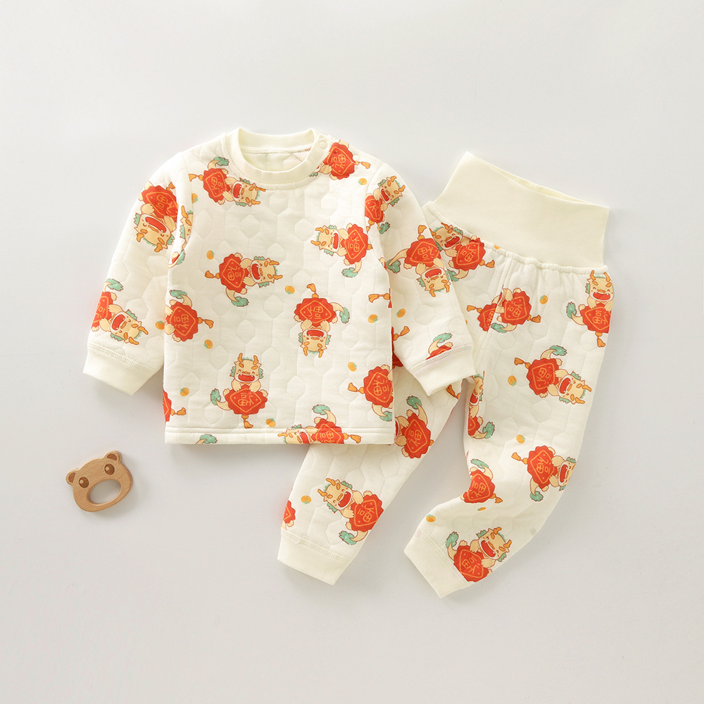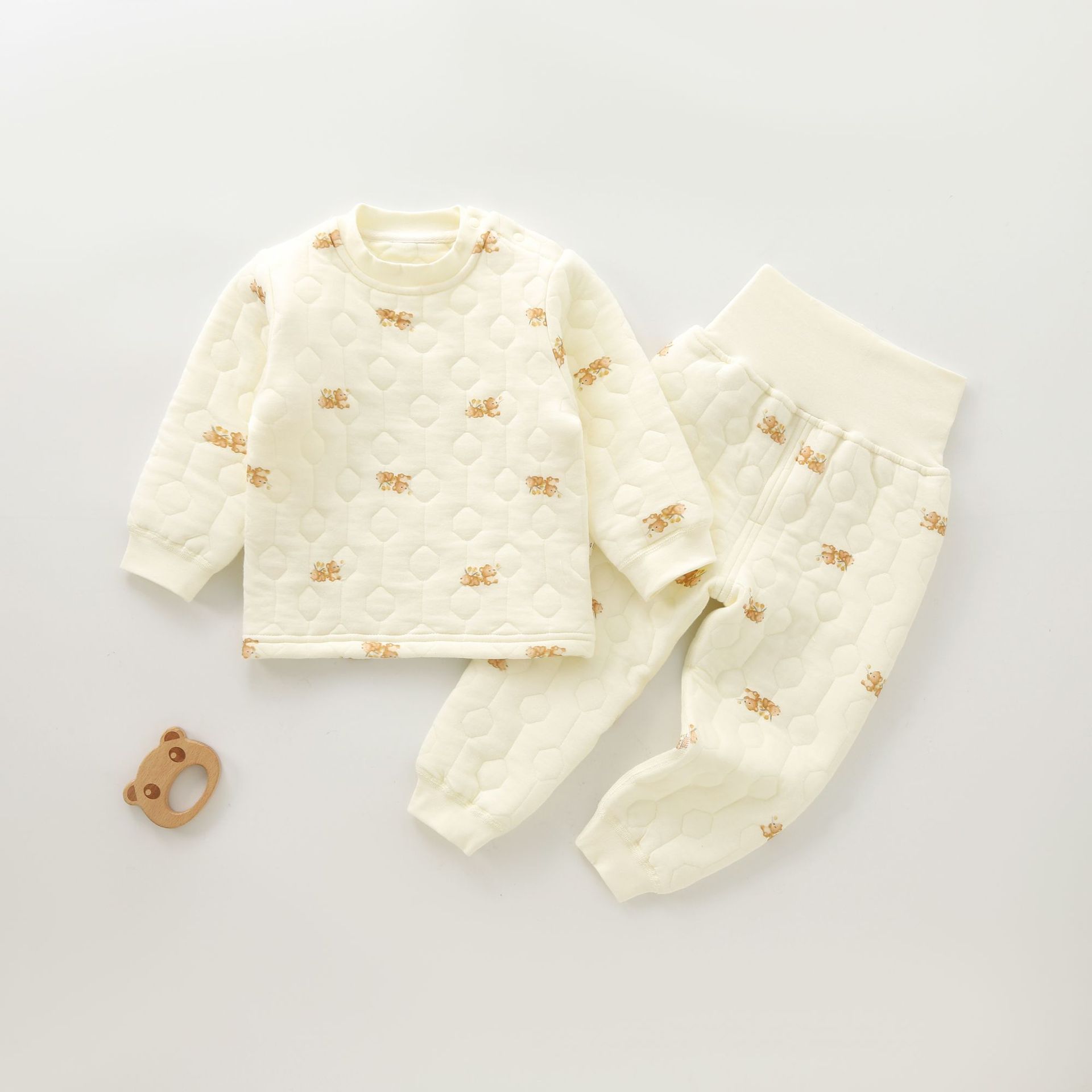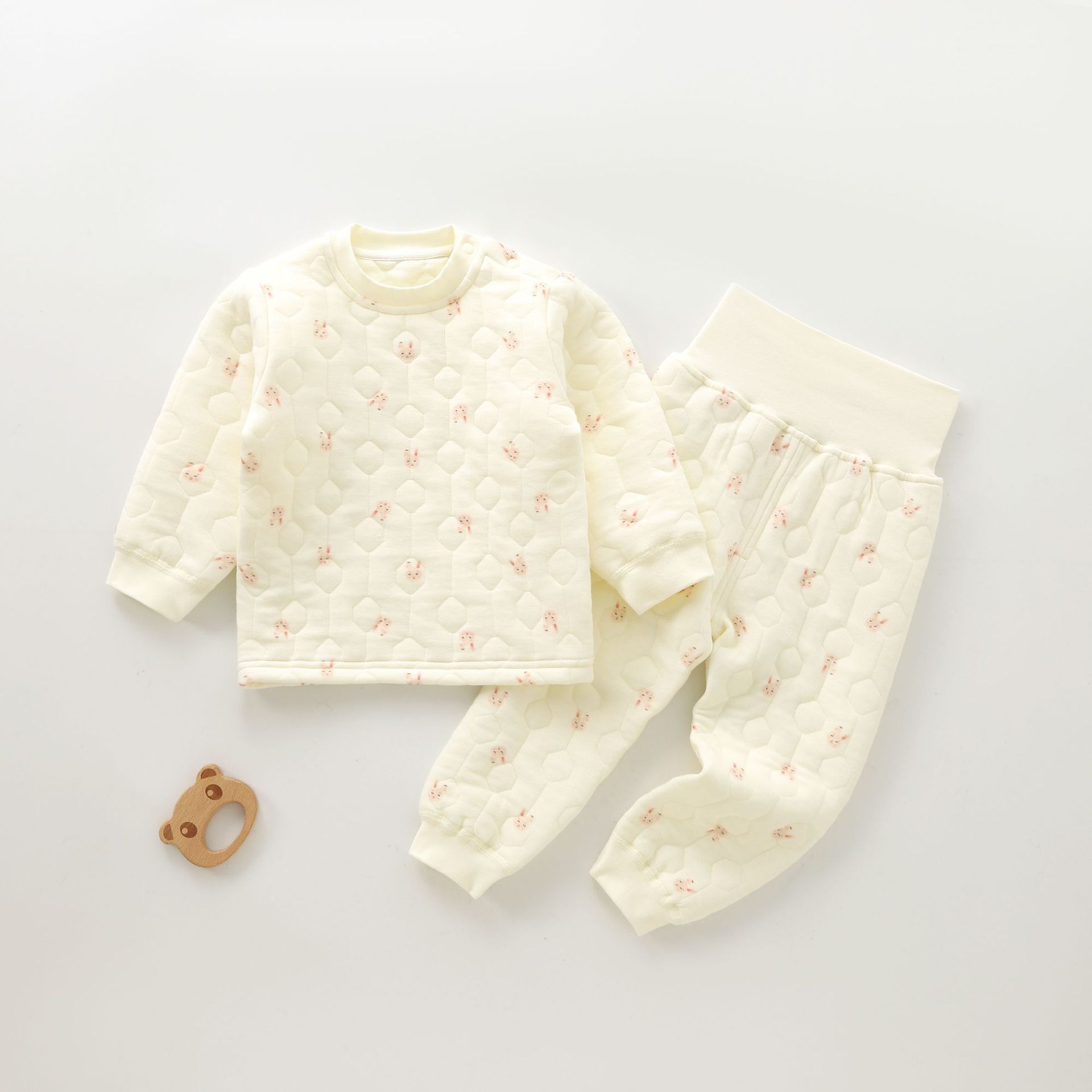 宝宝高腰护肚套装秋冬季三层保暖婴儿小童秋衣秋裤保暖内衣打底