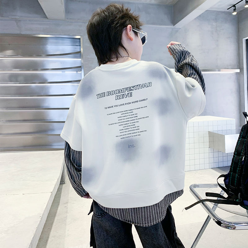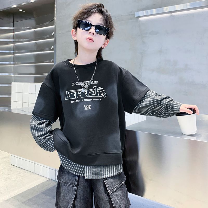 儿童装男童潮牌假两件卫衣春秋款2025新款中大童男孩上衣
