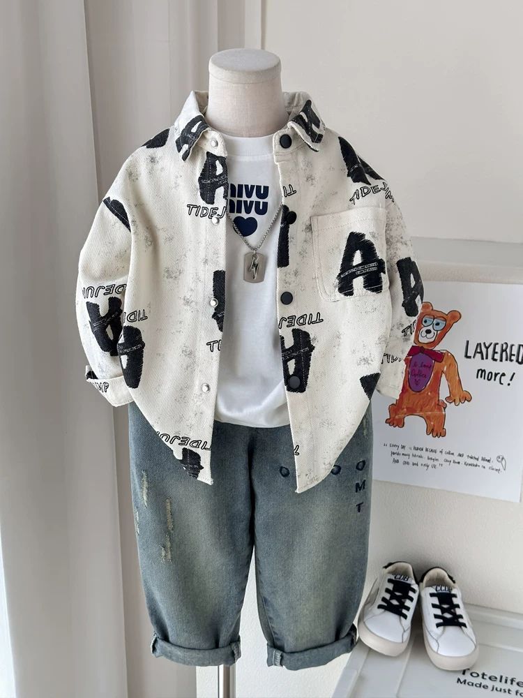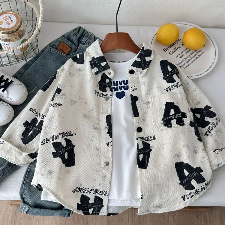 男童衬衫长袖春秋2025新款洋气儿童时尚春男孩外套帅气时髦中小童