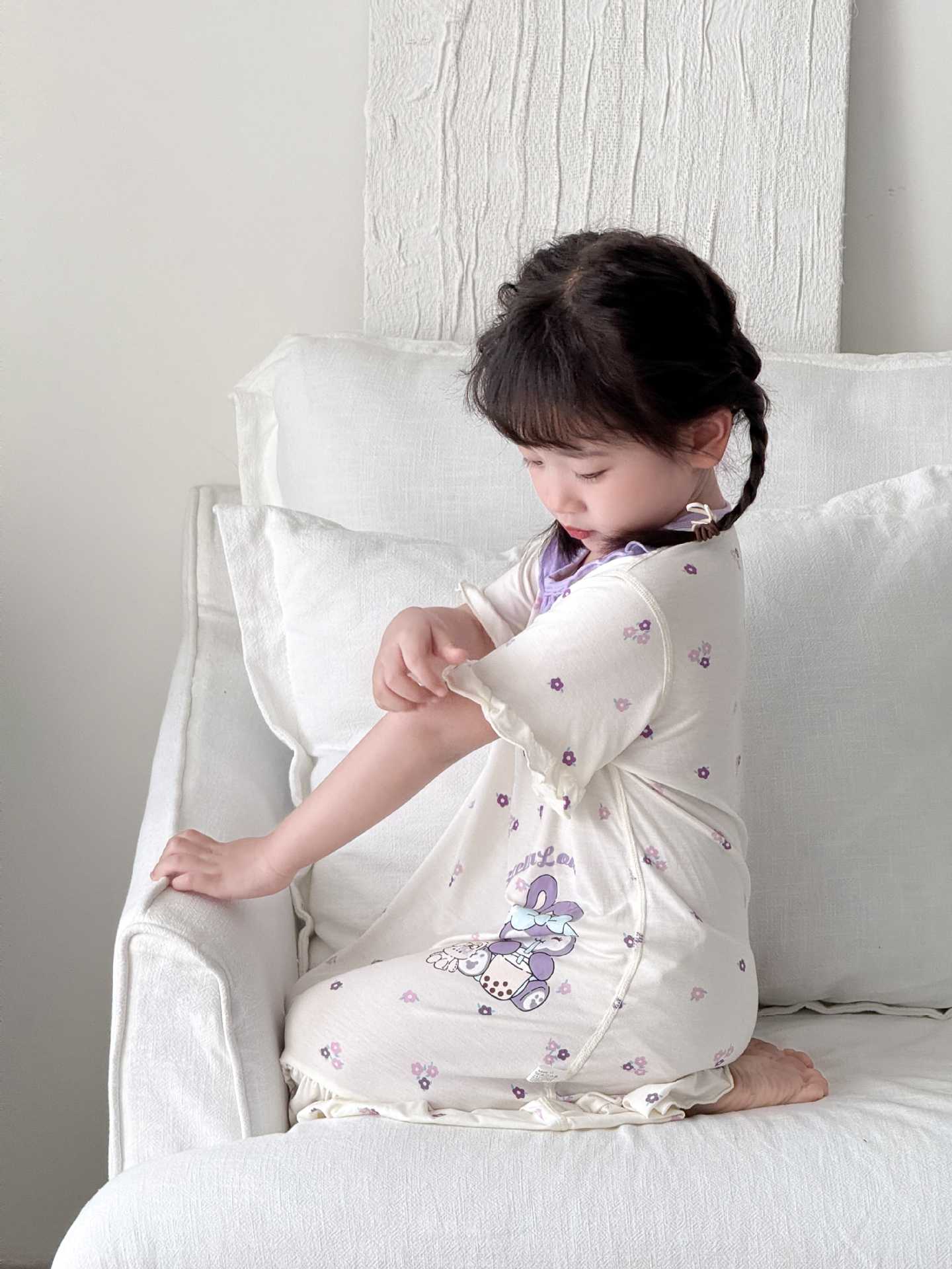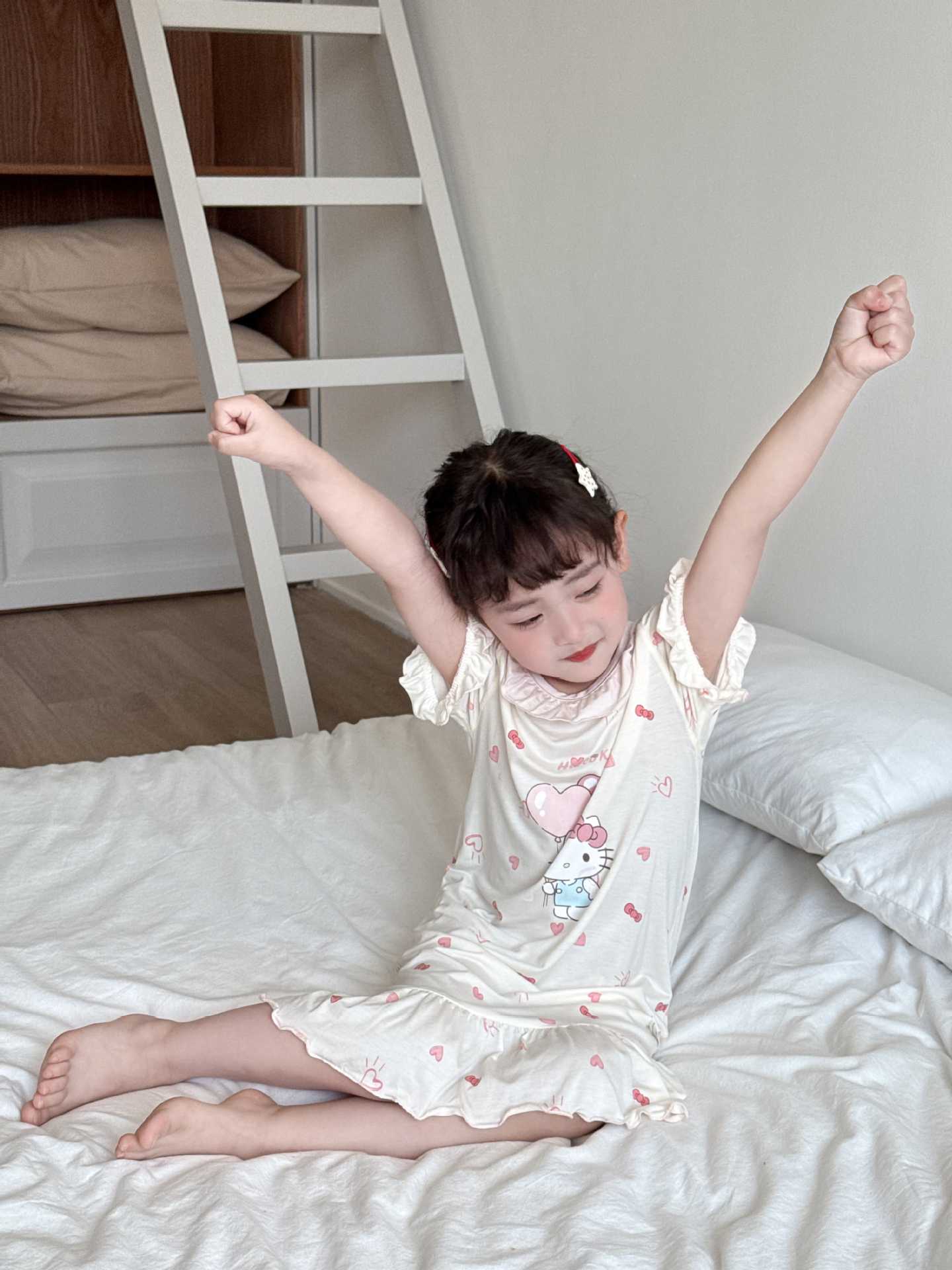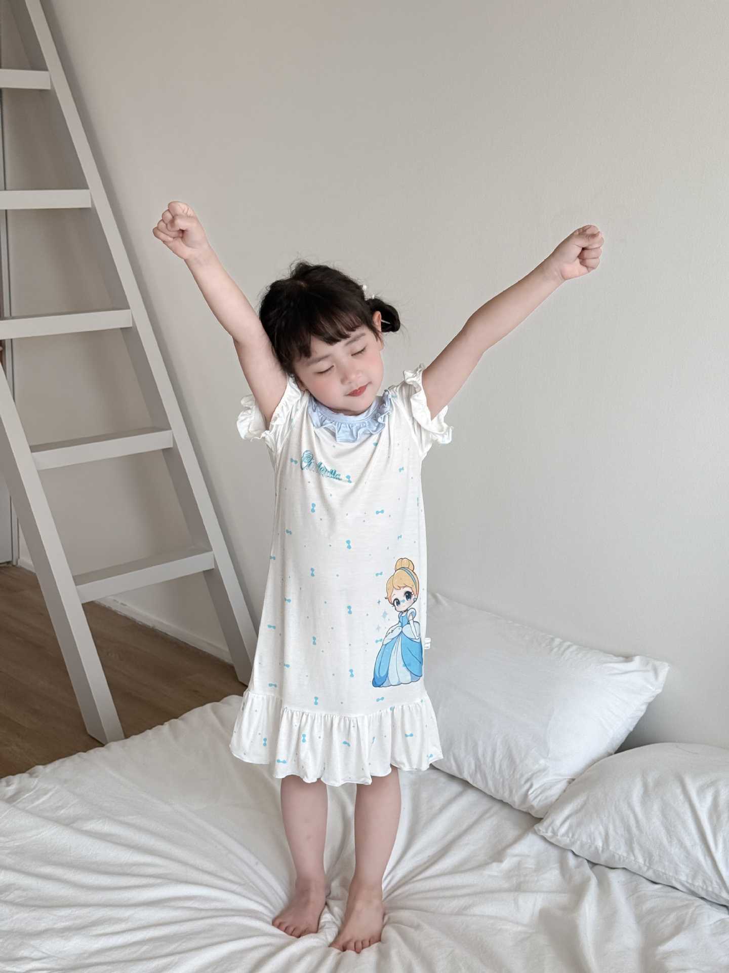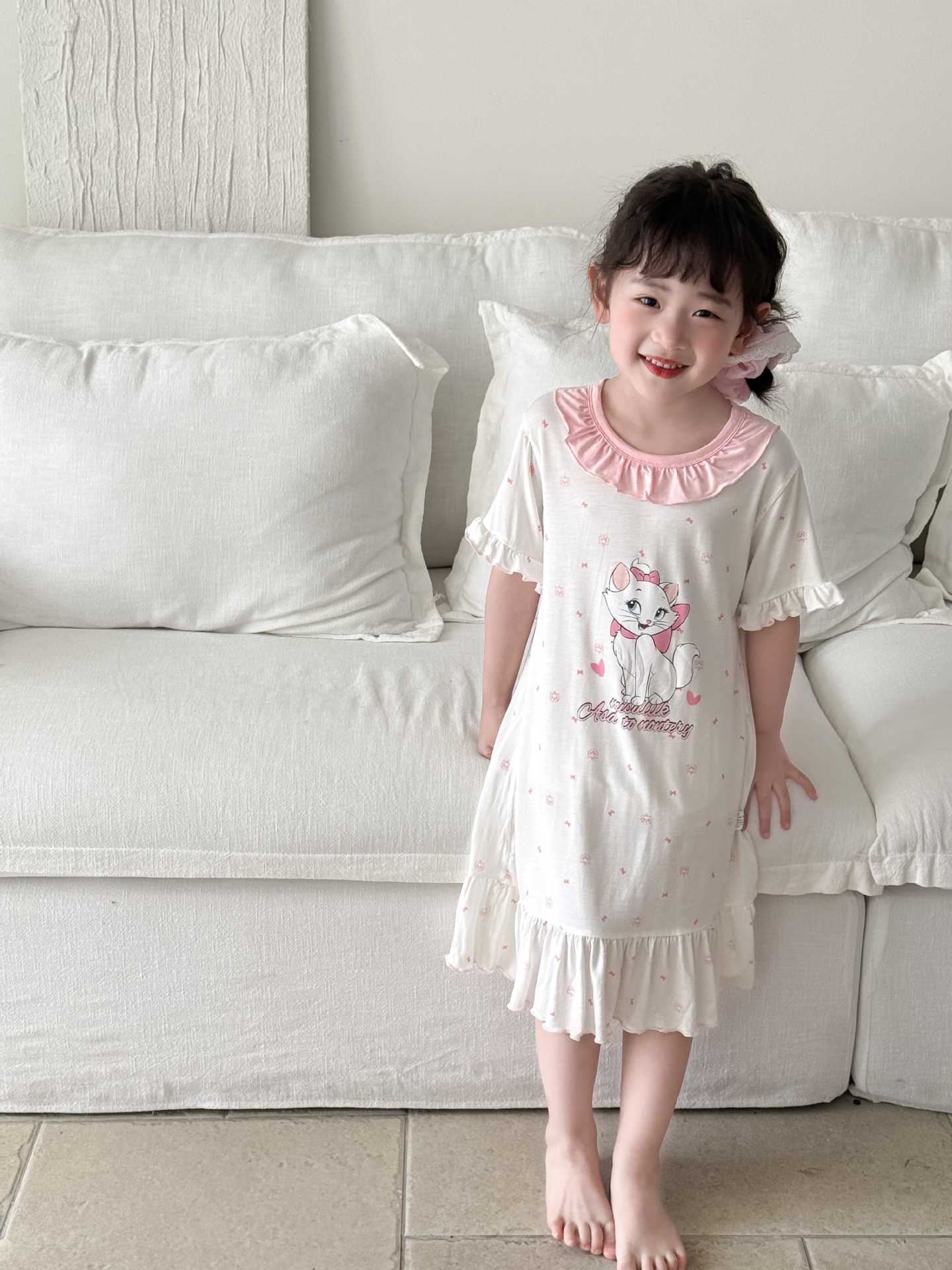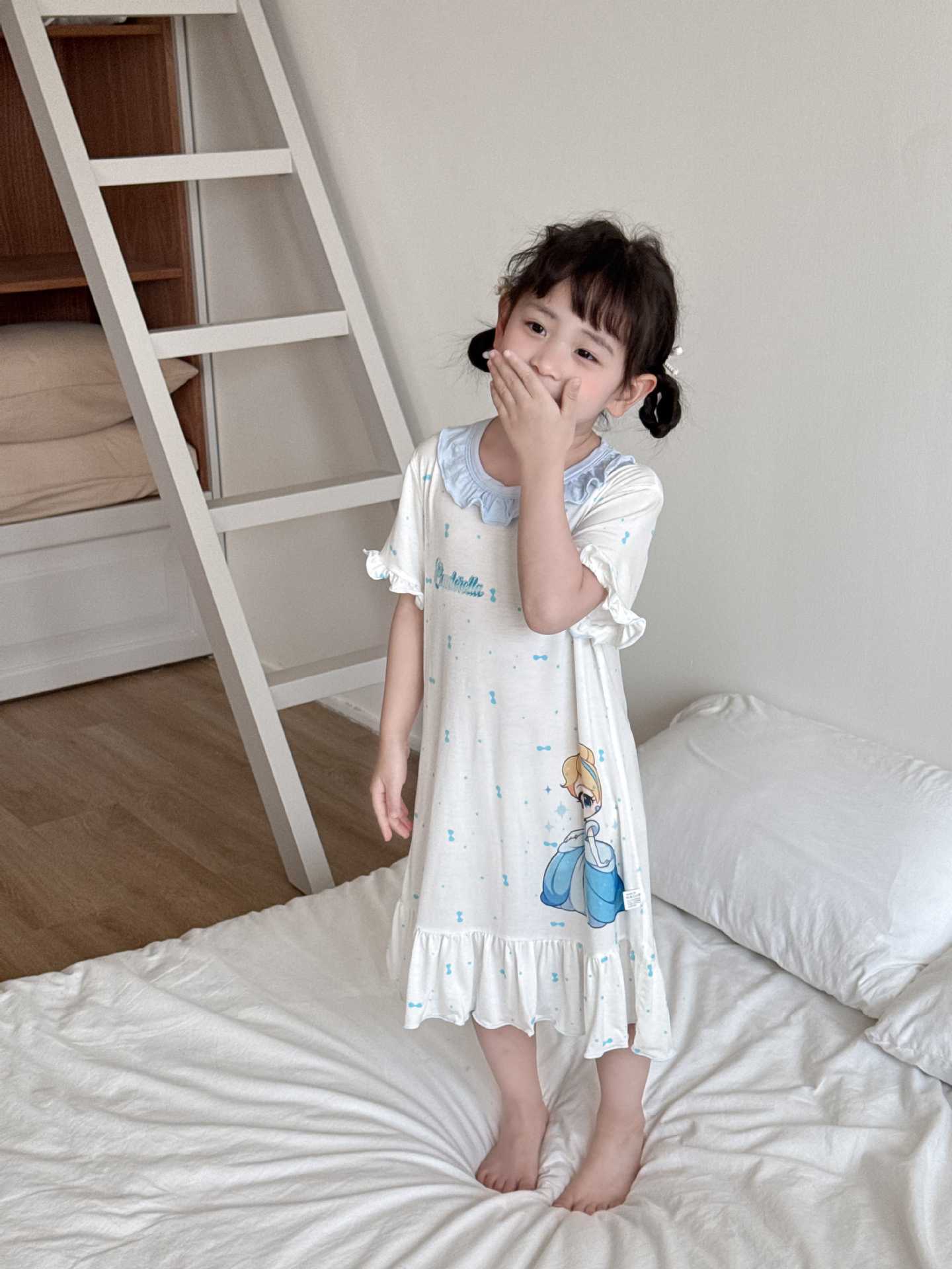女童连衣裙公主裙儿童睡裙女夏季薄款卡通印花边领子宝宝裙子a类