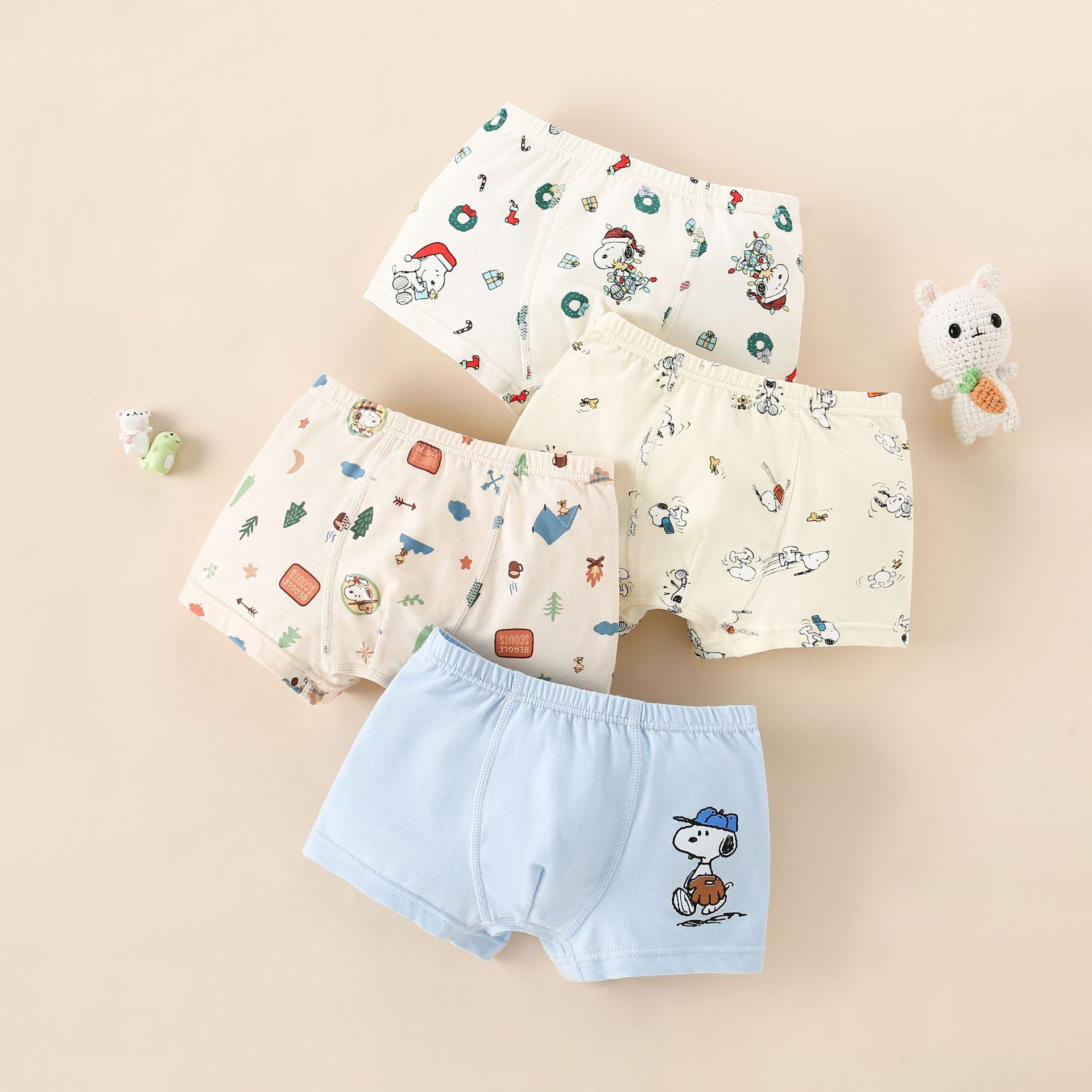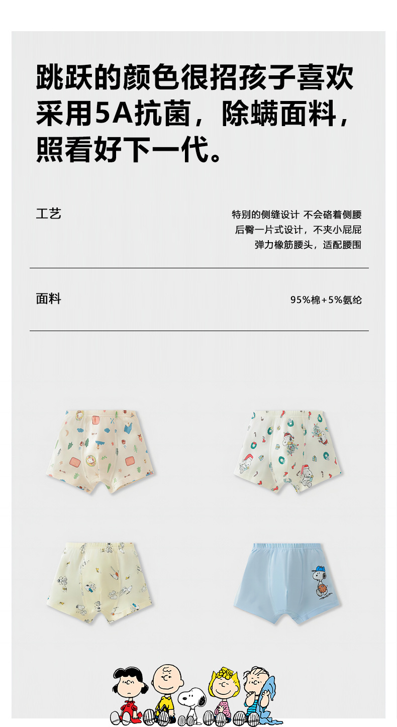 史努比儿童内裤男童莱卡棉95平角四角男宝宝小男孩中大童四季短裤