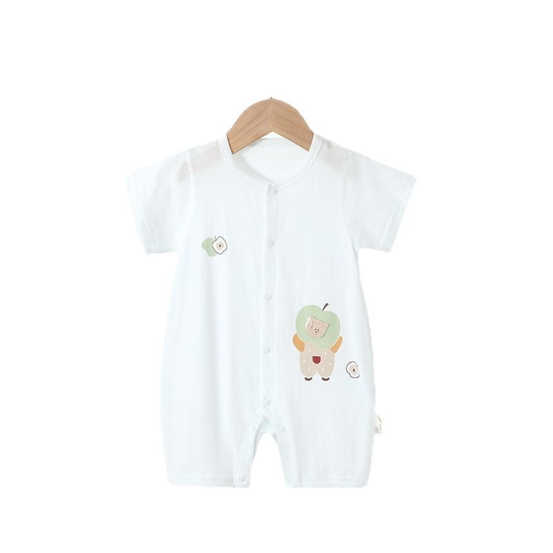 婴儿夏季冰瓷棉连体衣纯棉无骨爬服短袖哈衣宝宝超薄透气空调衣服