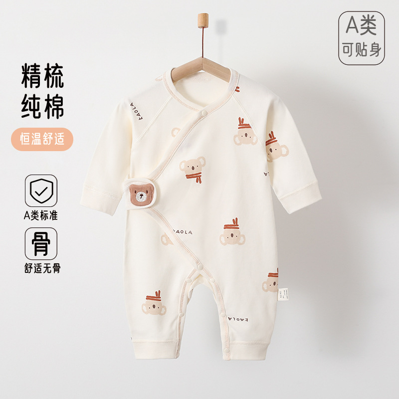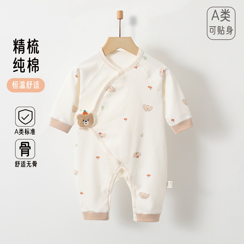 新生儿衣服春秋纯棉无骨男女宝宝满月连体衣婴儿长袖连体衣外出服