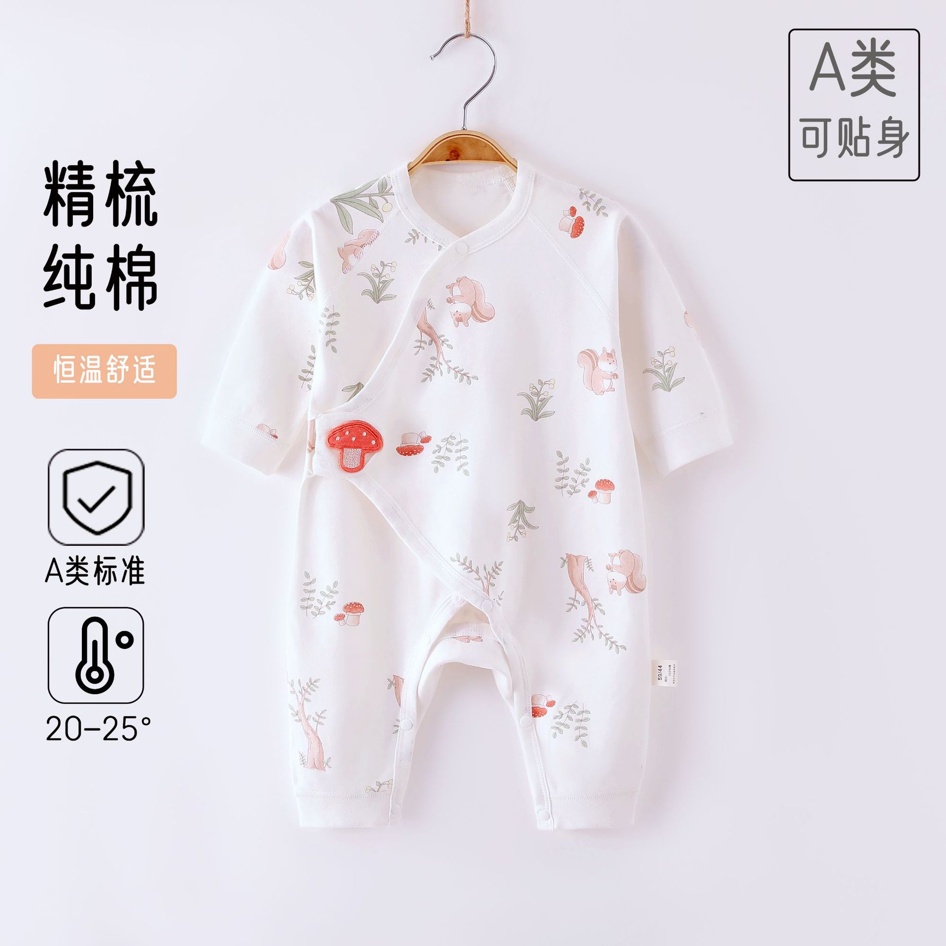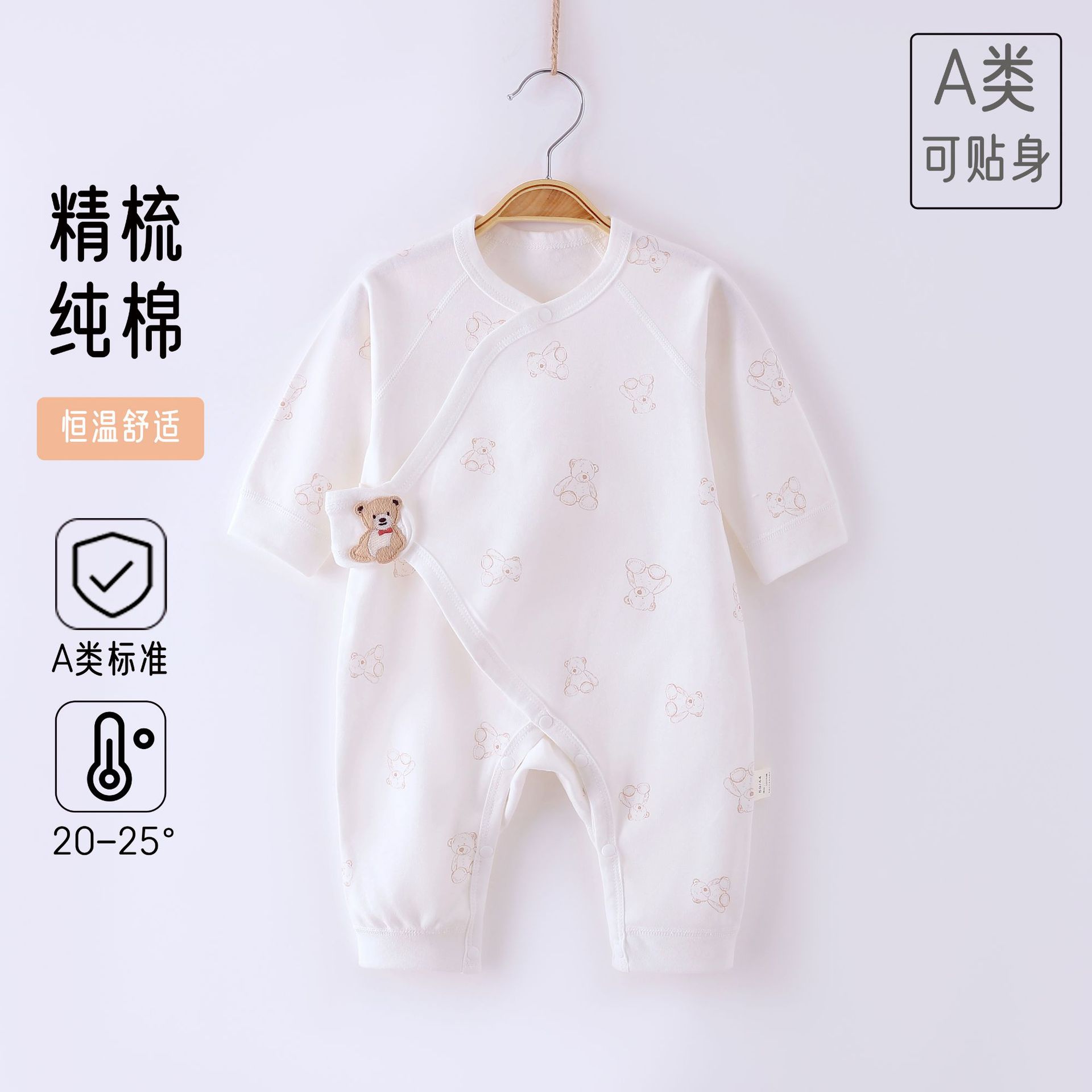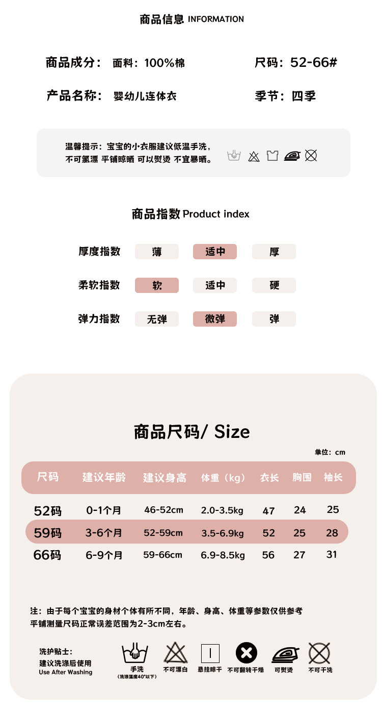 婴儿纯棉无骨连体衣宝宝哈衣爬服家居服魔术贴护肚四季款长袖童装