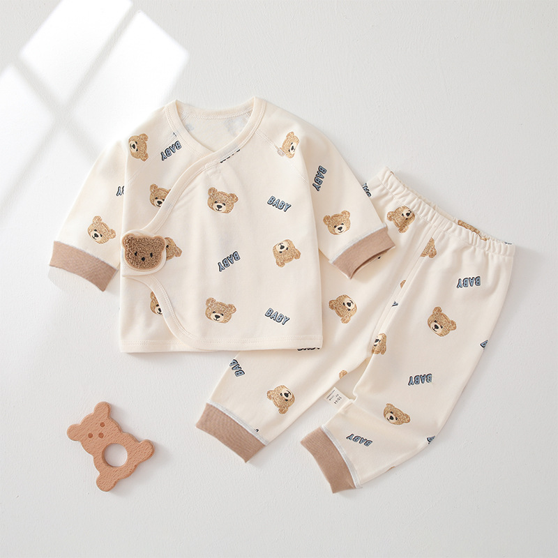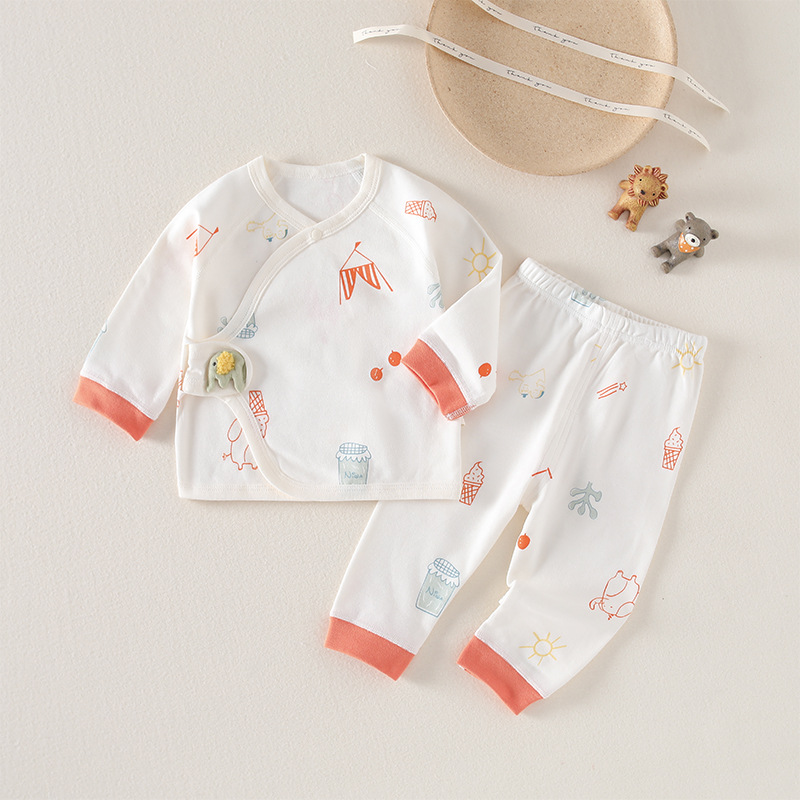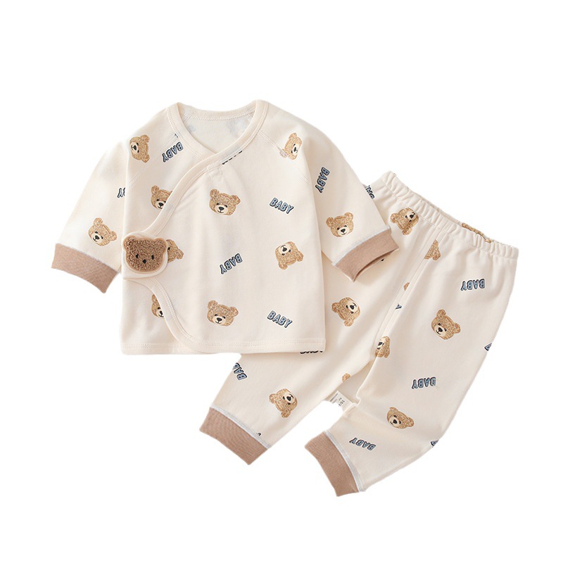 婴幼儿纯棉无骨四季款新生儿衣服长袖分体二件套装男女宝宝家居服