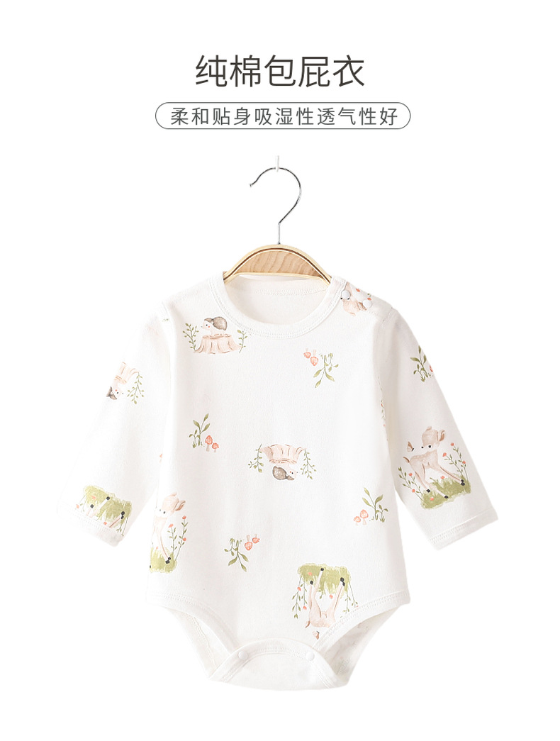 婴儿包屁衣春秋冬季长袖三角全棉无骨连体衣男女宝宝护肚哈衣爬服