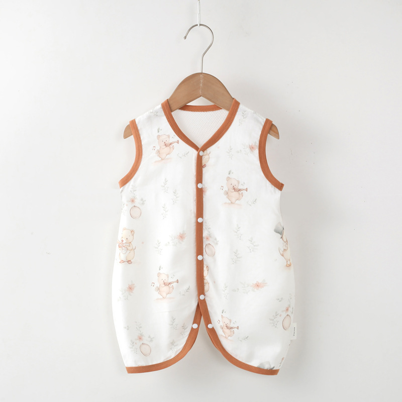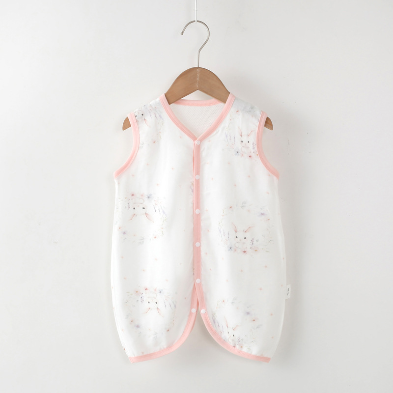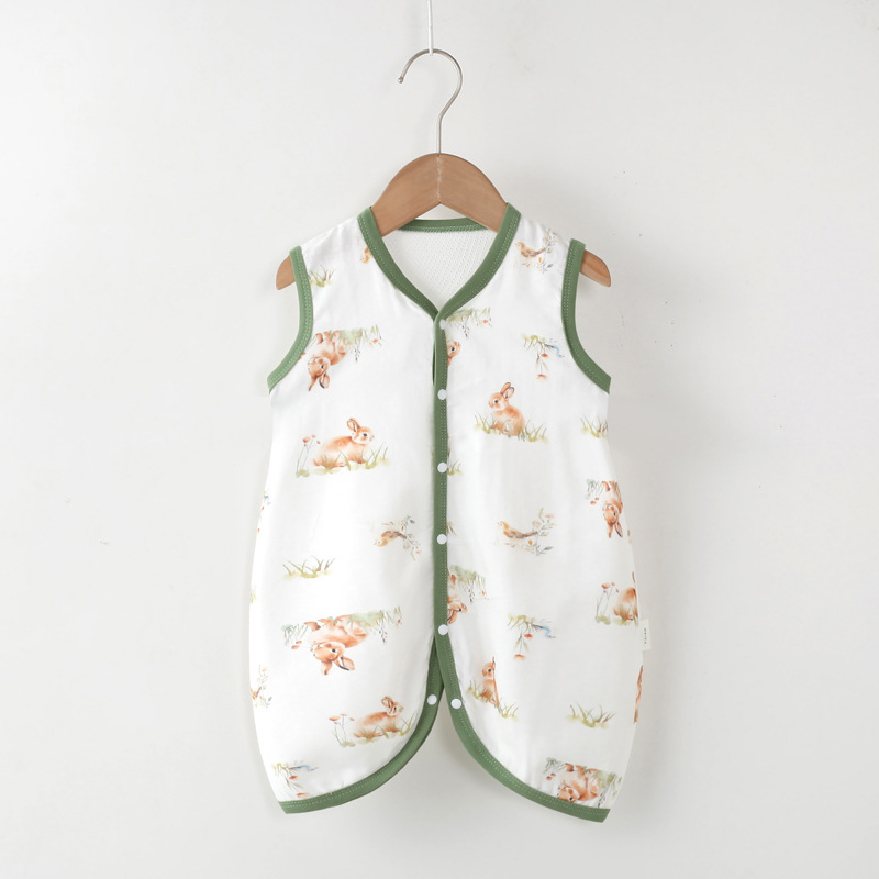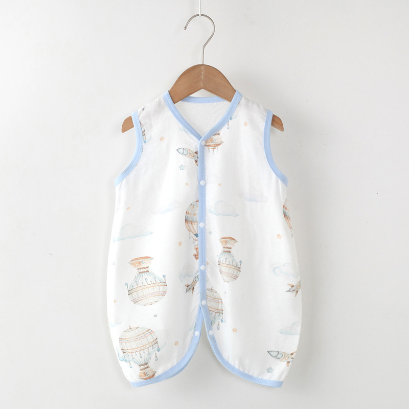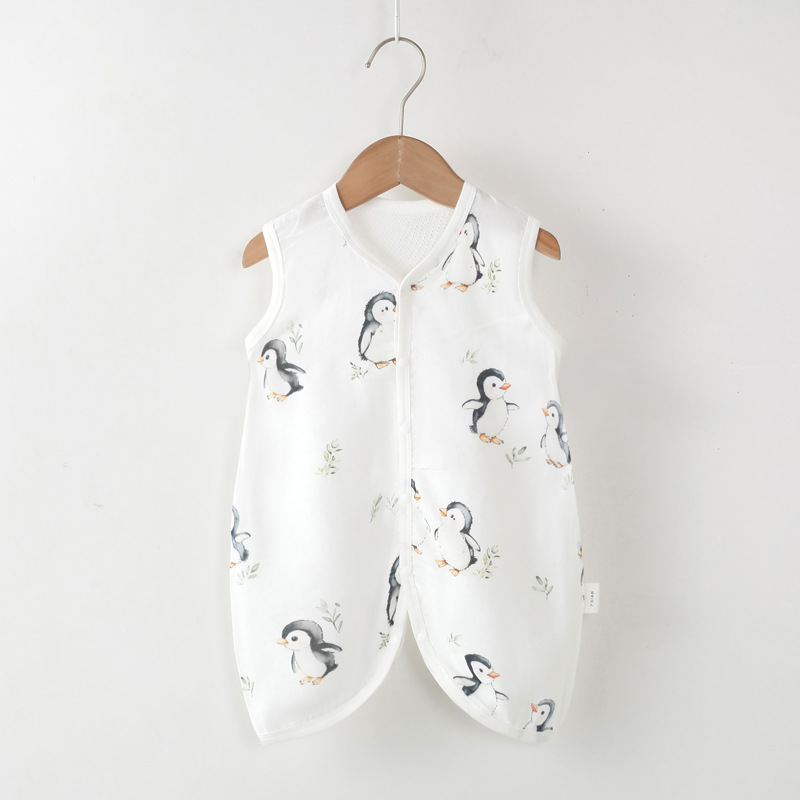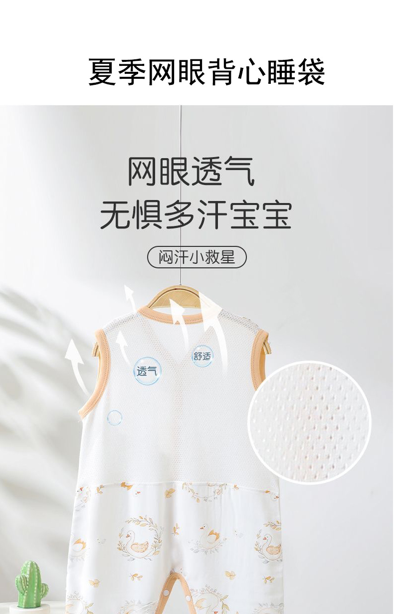 婴儿睡袋夏季薄款新生儿纱布背心睡袋透气排汗儿童防踢被