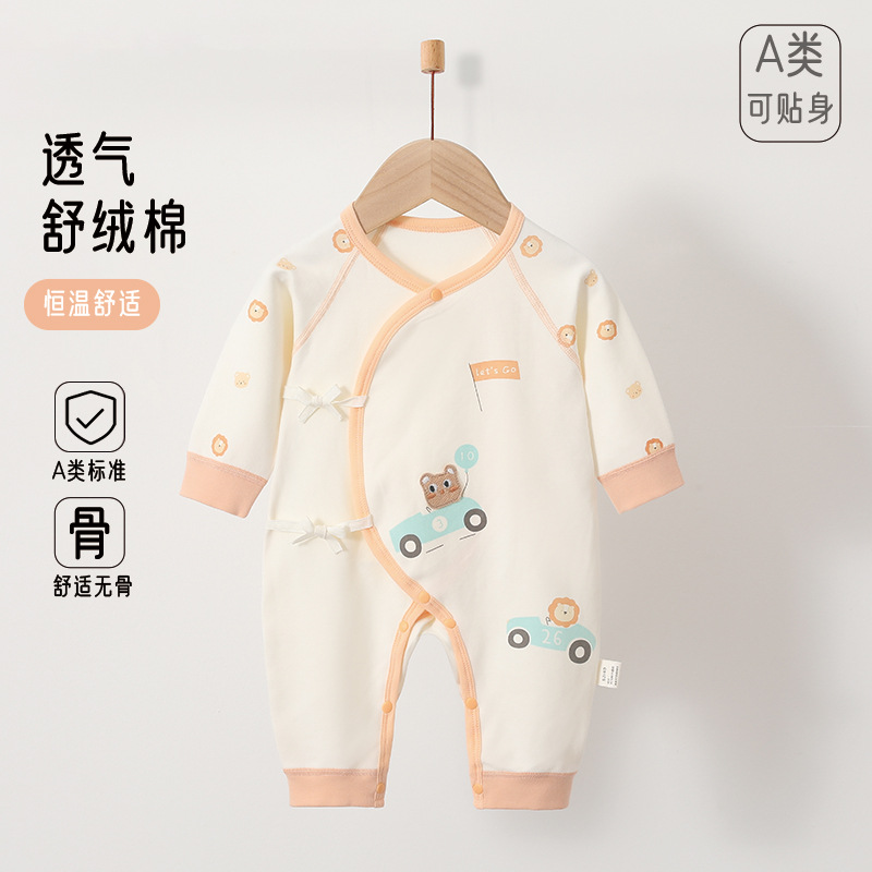 新生儿春秋连体衣衣服婴儿斜襟蝴蝶衣纯棉无骨宝宝哈衣洋气