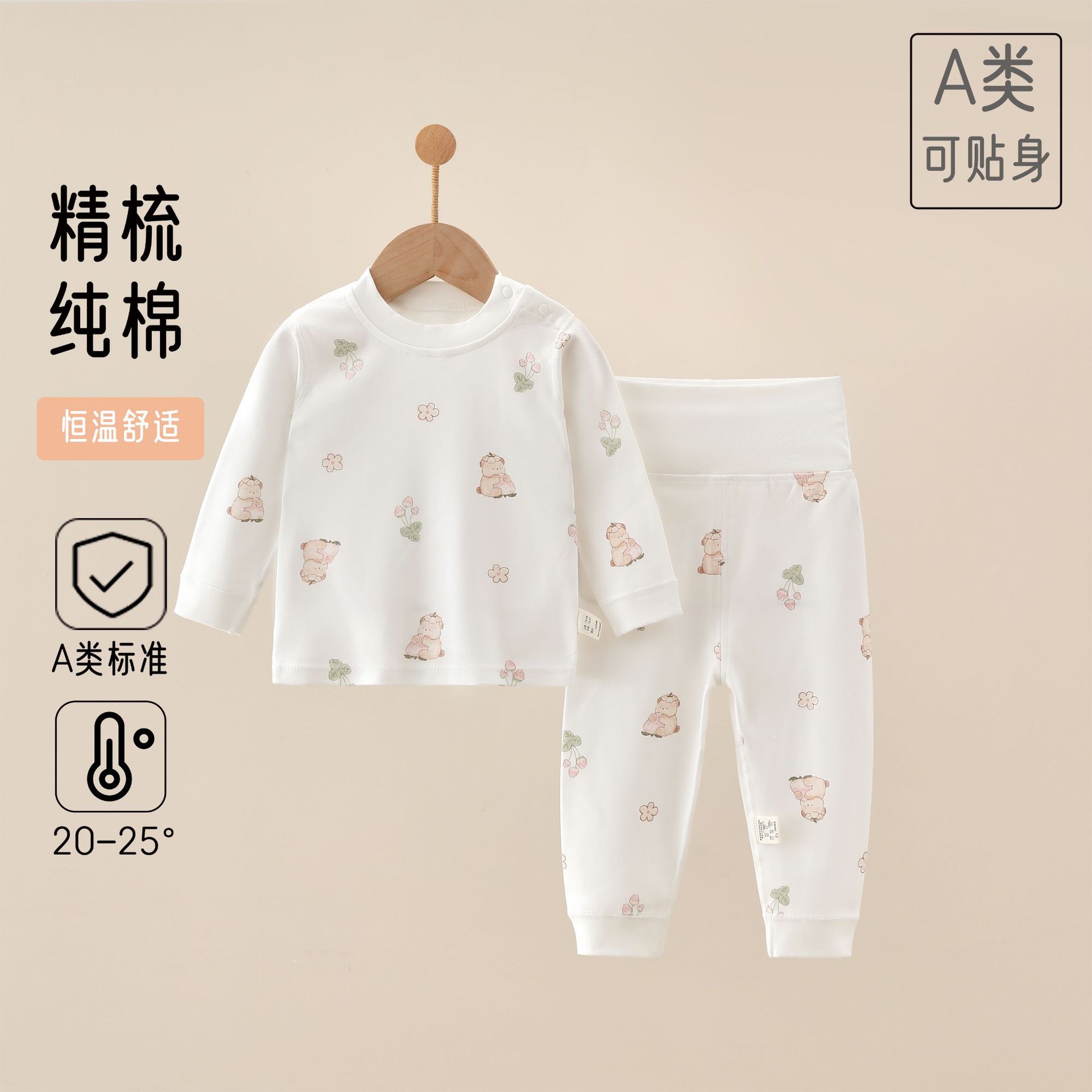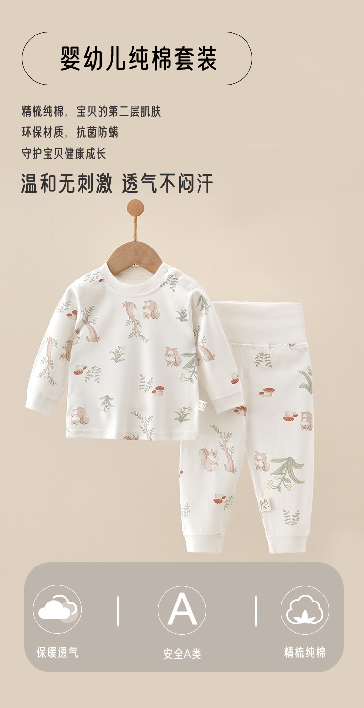 新生婴儿内衣套装四季A类纯棉长袖睡衣高腰无骨秋衣秋裤分体衣服