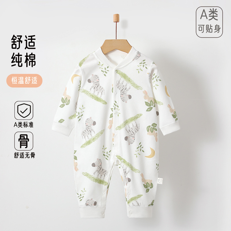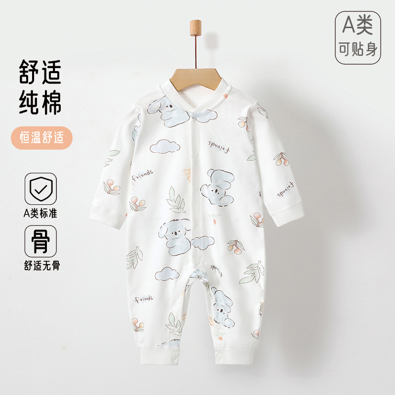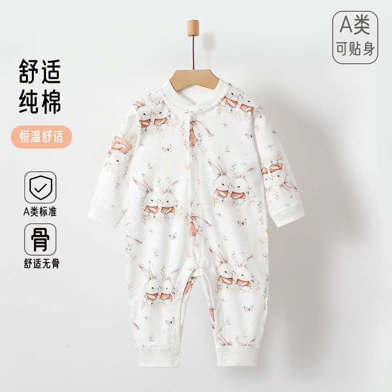 婴幼儿连体衣四季款纯棉无骨长袖爬服新生宝宝哈衣家居服外出衣服