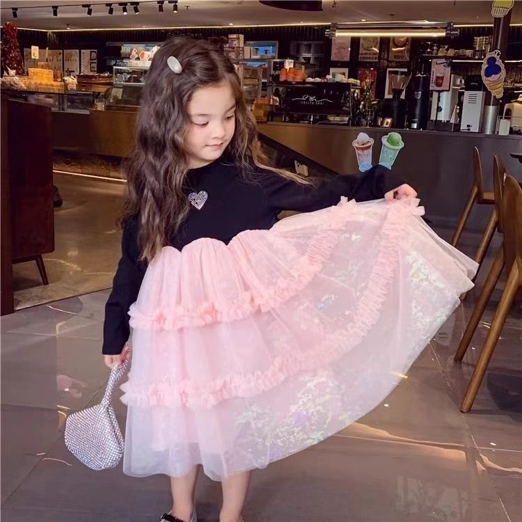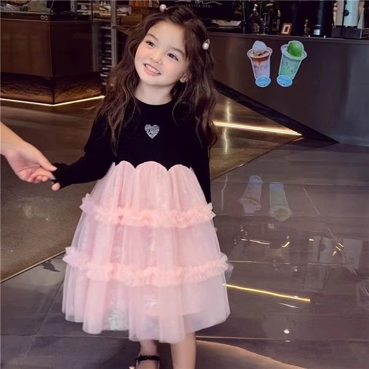 女童连衣裙秋装2024新款小女孩法式网纱拼接洋气儿童公主裙打底裙
