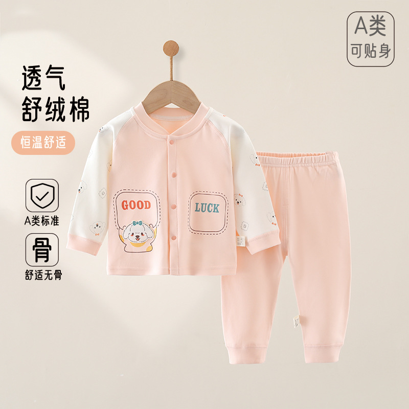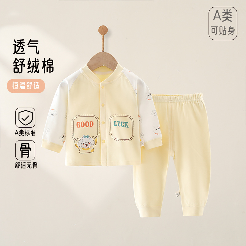 新生儿高端舒绒面料无骨四季款婴儿衣服分体二件套装男女宝宝童装