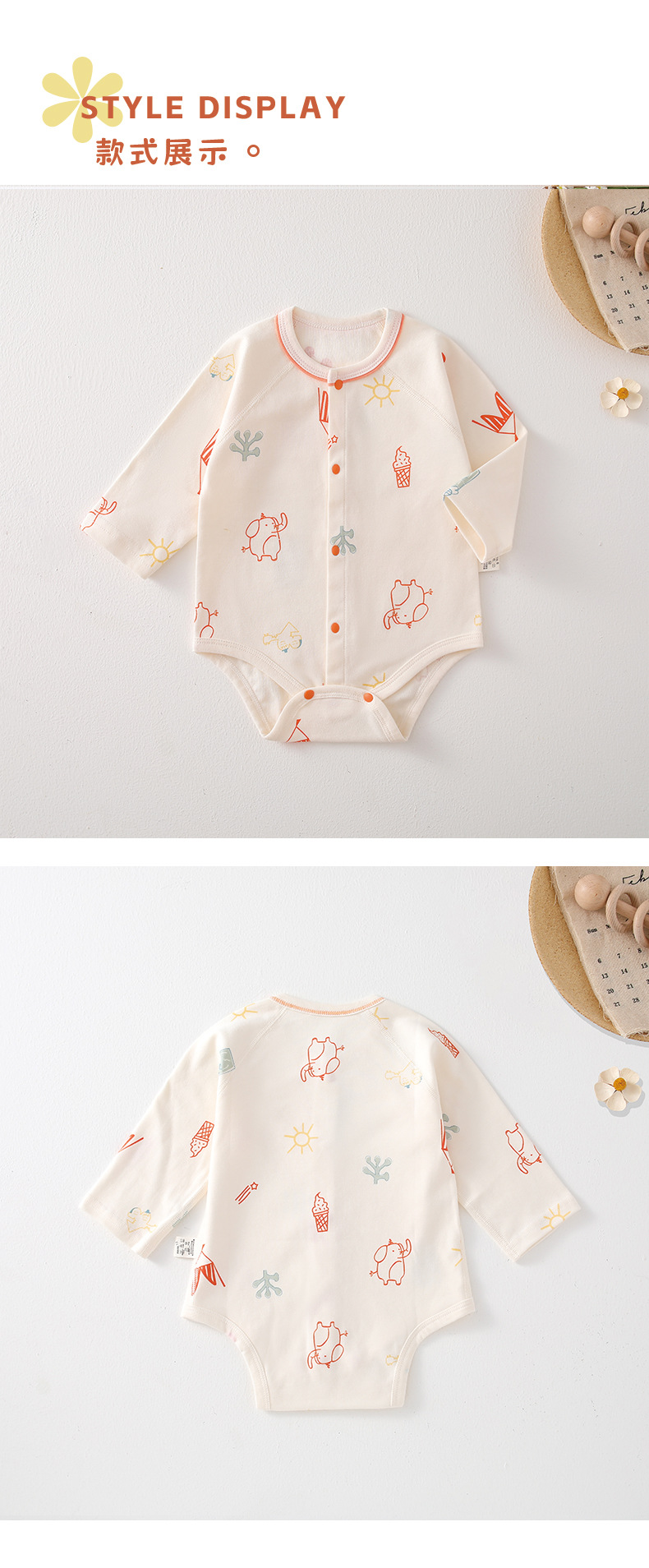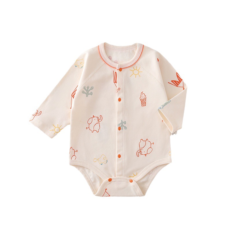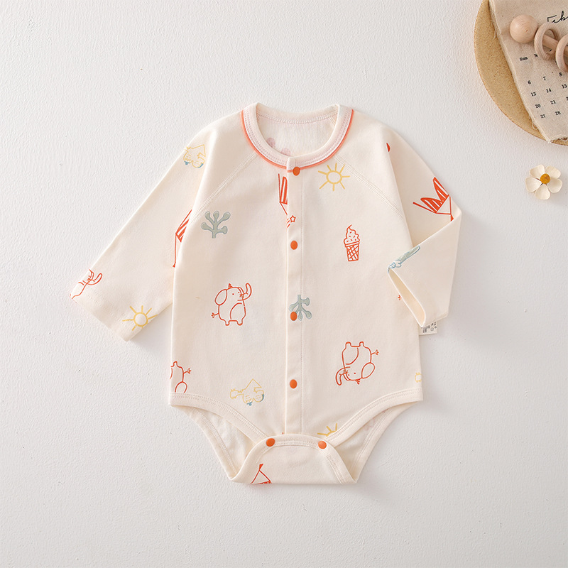 婴儿包屁衣四季款男女宝宝三角爬服纯棉新生儿长袖印花家居服爬服