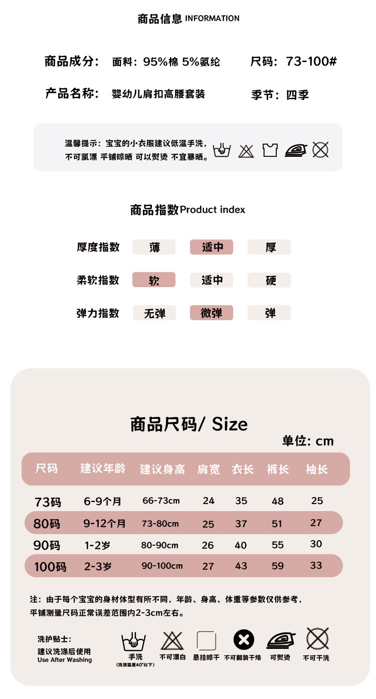 婴幼儿家居服套装高腰护肚男女宝宝春秋打底内衣纯棉无骨儿童衣服