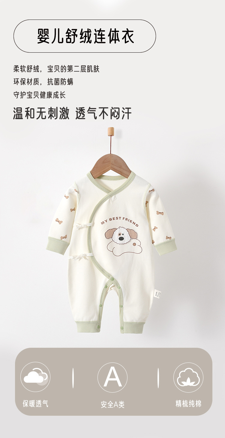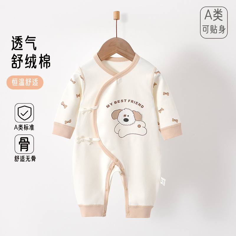 新生儿婴儿护肚衣服四季新款舒绒纯棉无骨初生宝宝满月连体衣爬服