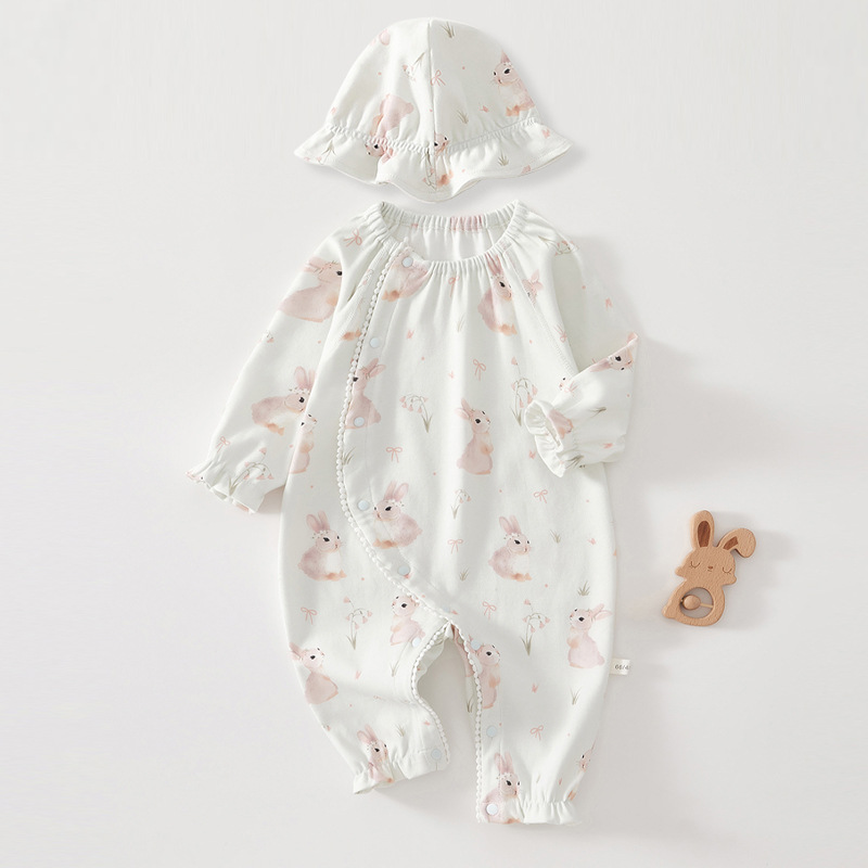 婴儿连体衣秋季新款新生儿衣服带帽长袖包屁衣女宝宝纯棉哈衣外出
