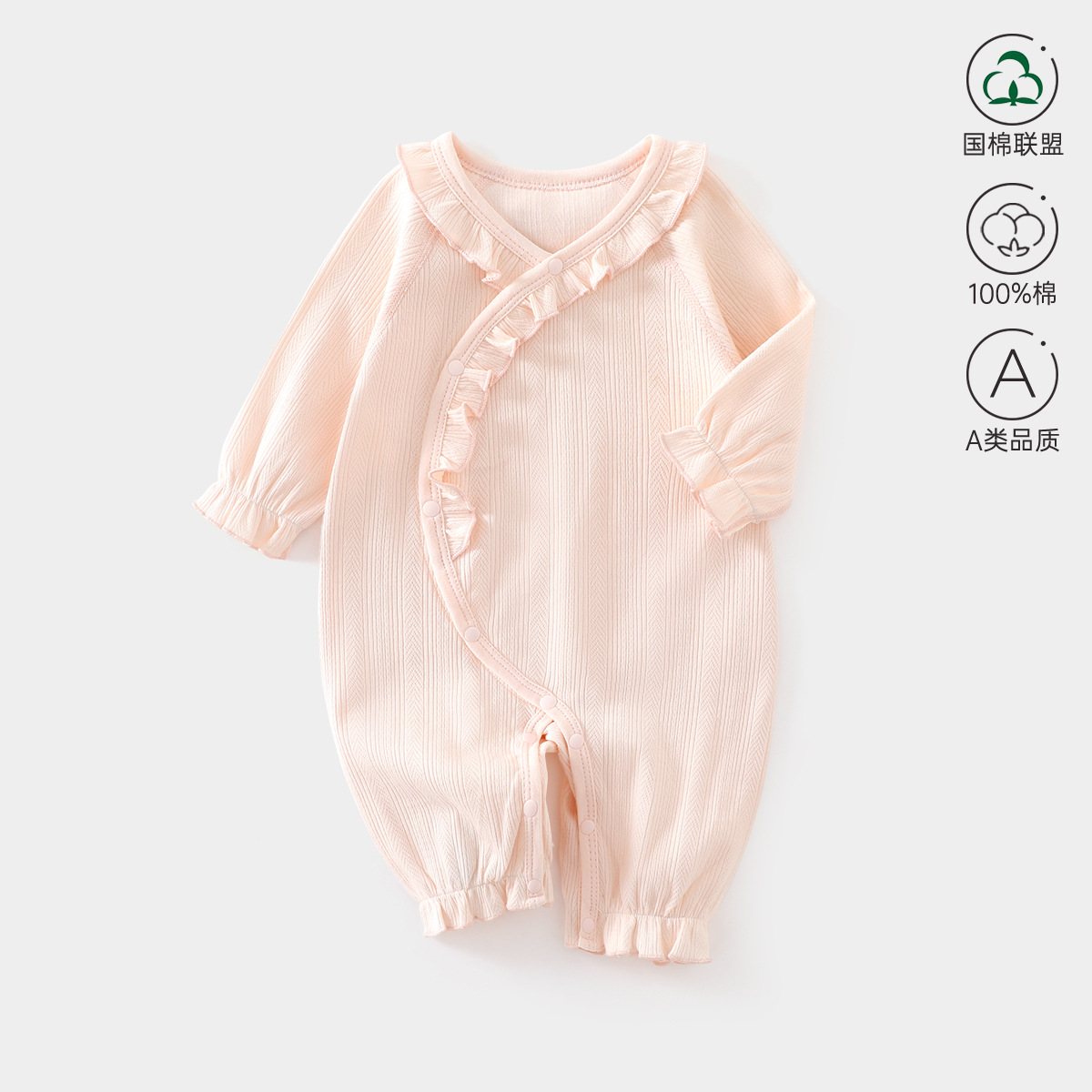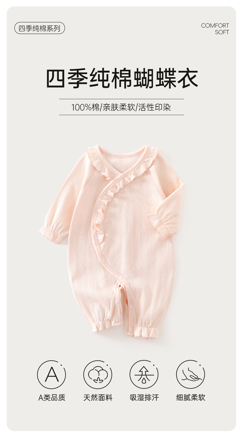 新生儿连体衣a类纯棉外出服女宝哈衣无骨爬服春秋婴儿保暖蝴蝶衣
