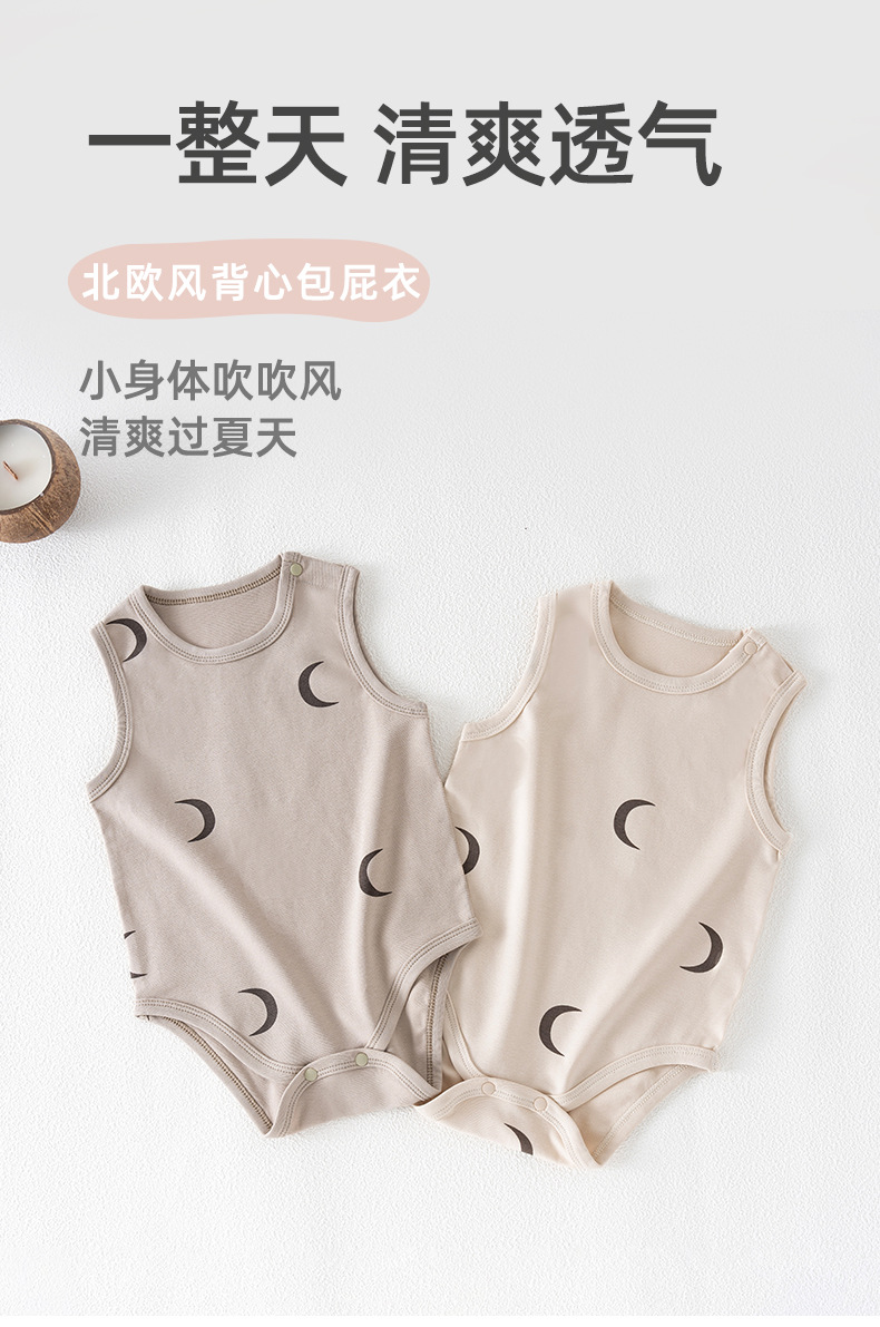 北欧风婴儿夏季透气背心包屁衣欧美ins风男女童无袖薄款三角爬服