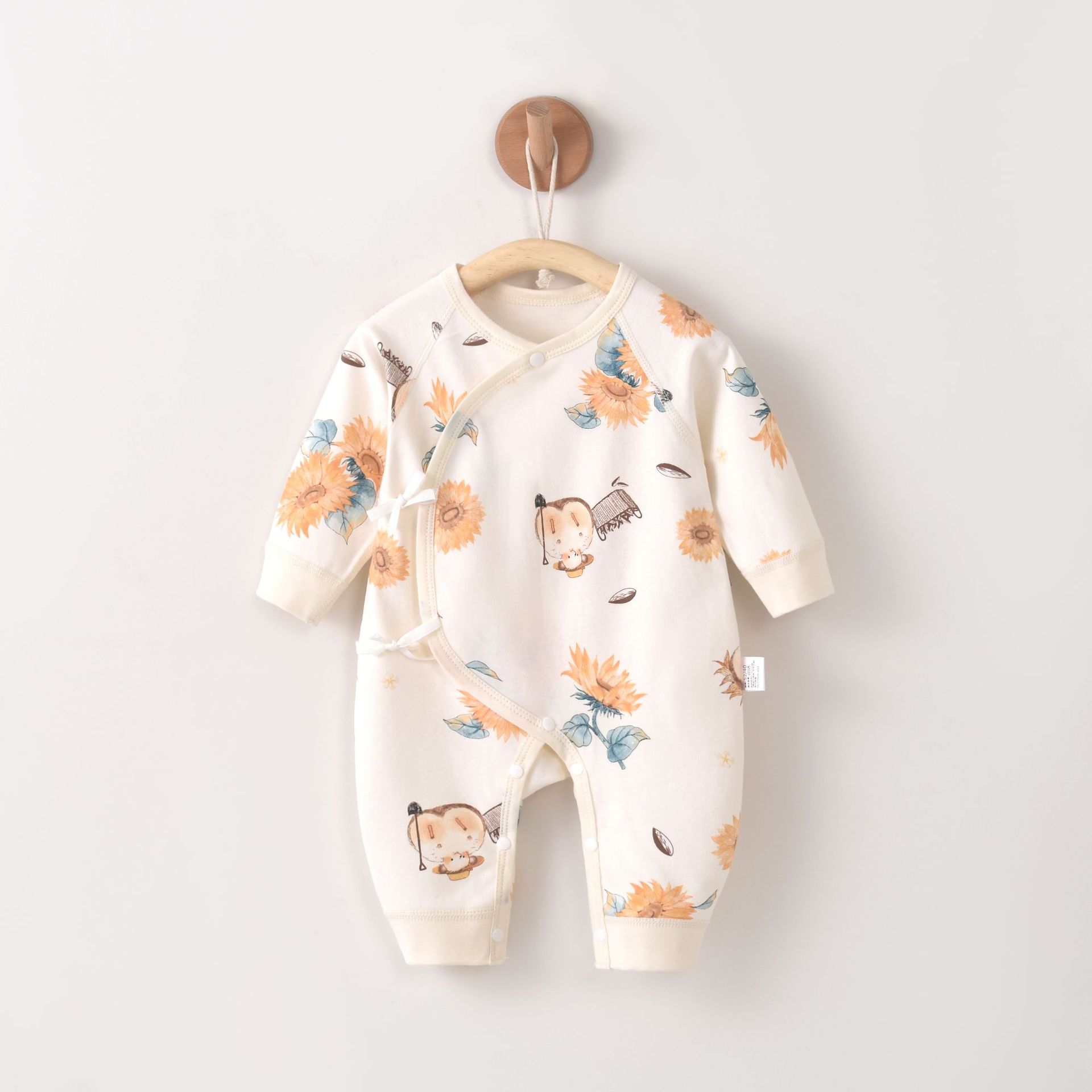 宝宝连体衣春秋纯棉新生儿衣服偏襟和尚服睡衣婴儿哈衣爬服秋装