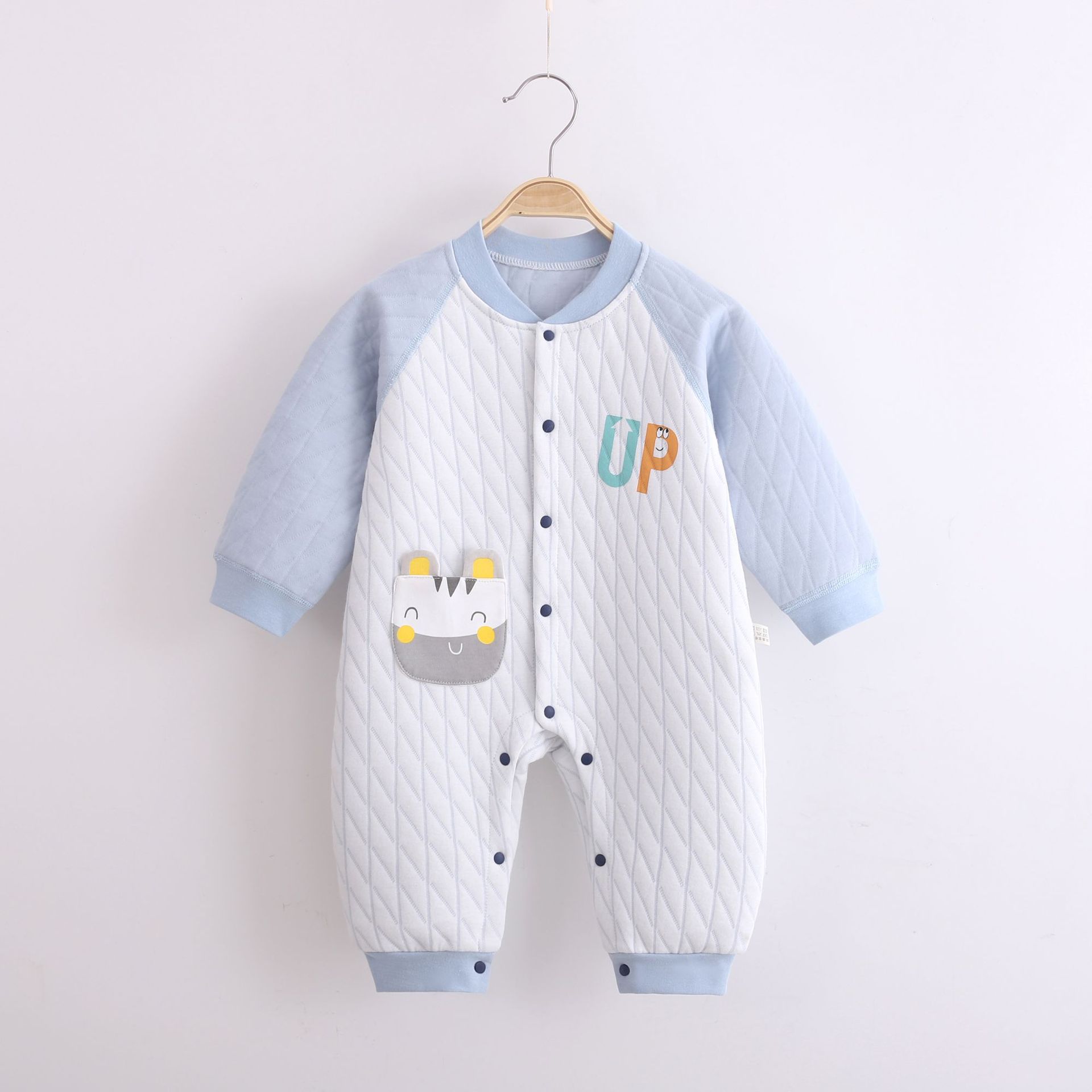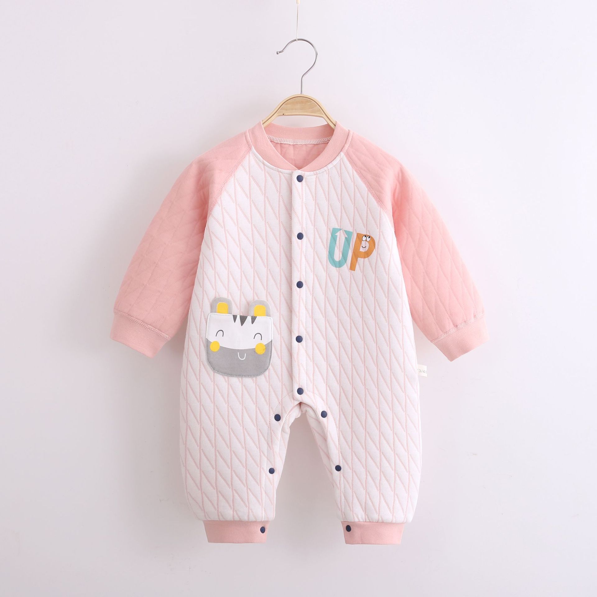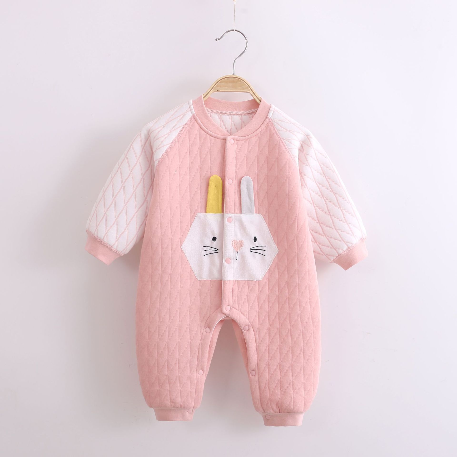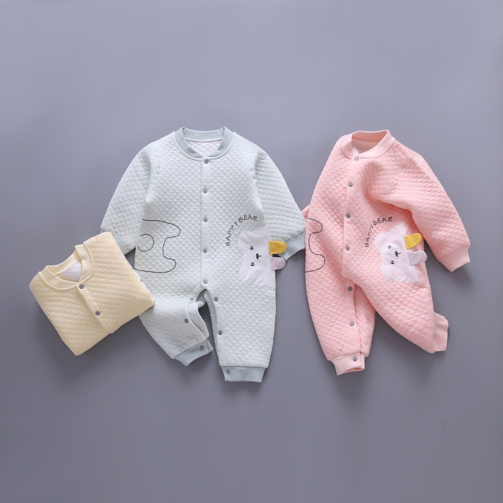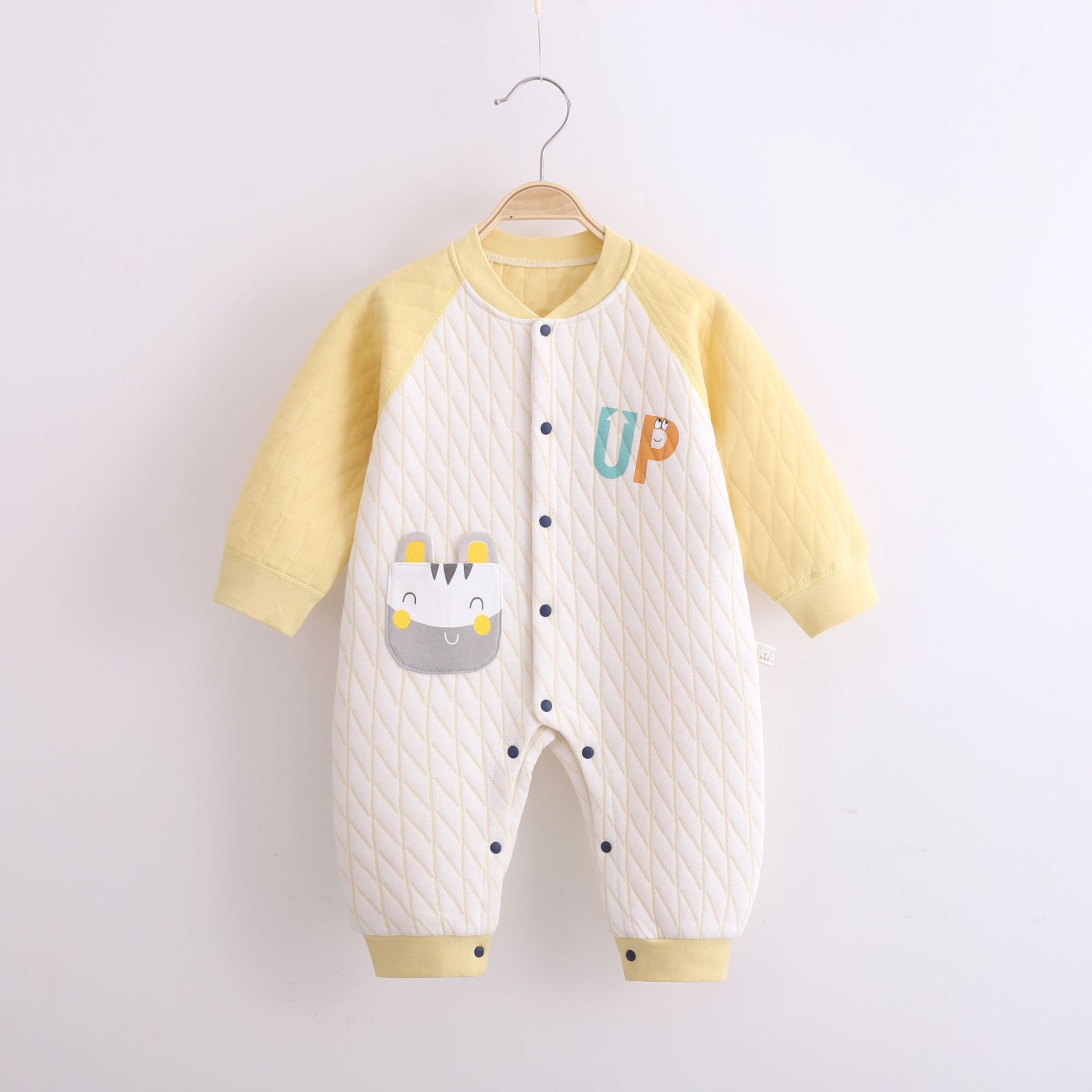 新款婴儿连体短袖衣服秋冬棉三层保暖无骨宝宝加厚爬服哈衣