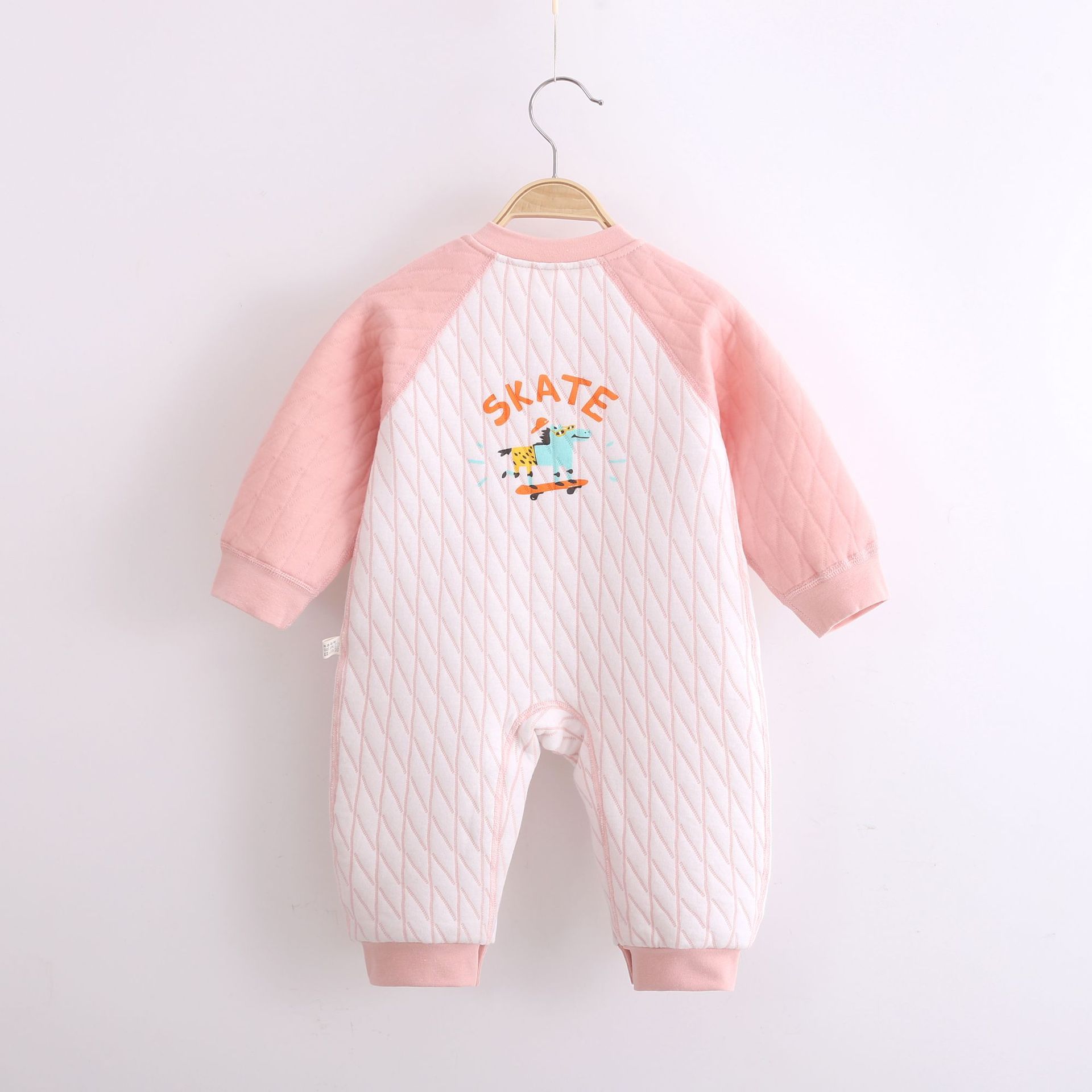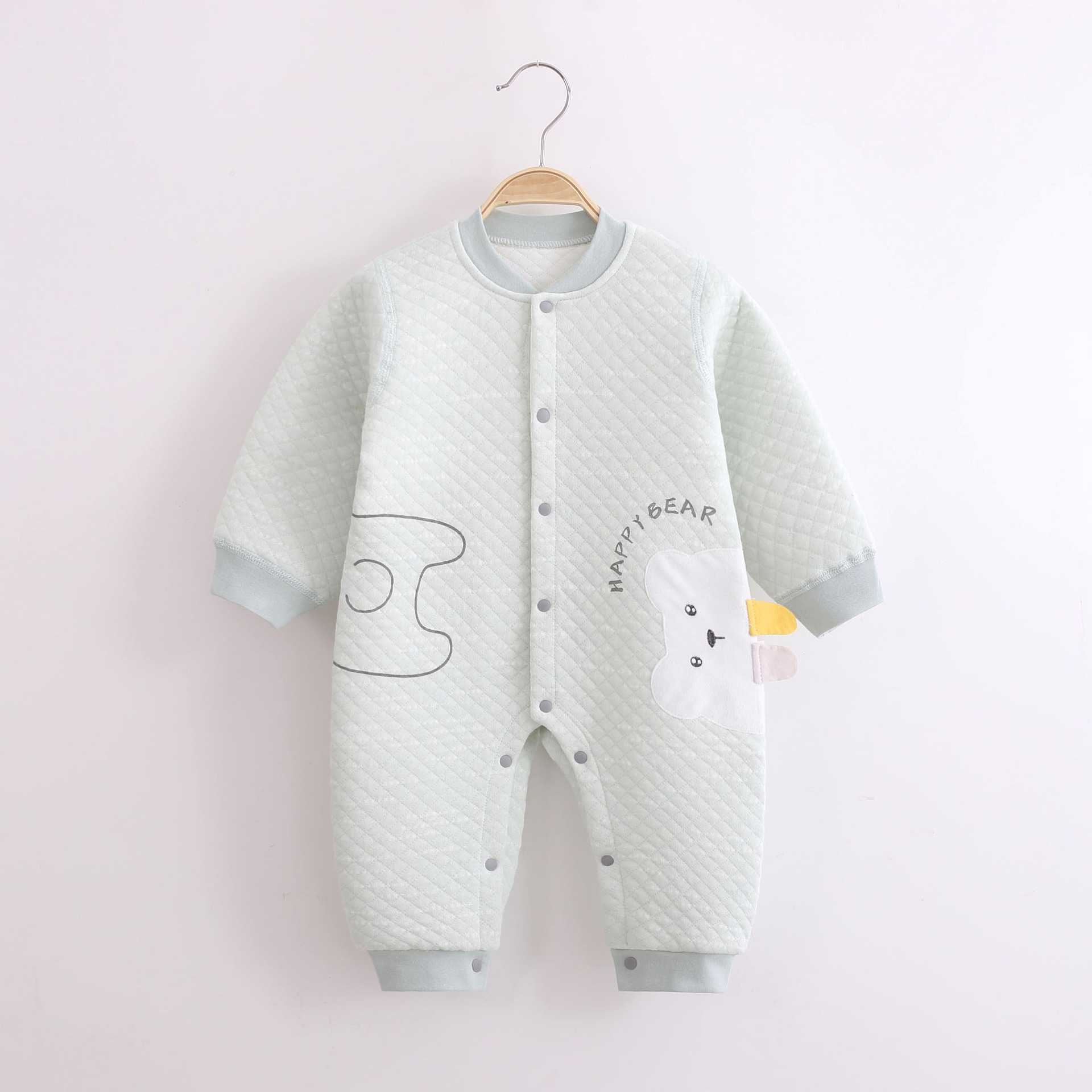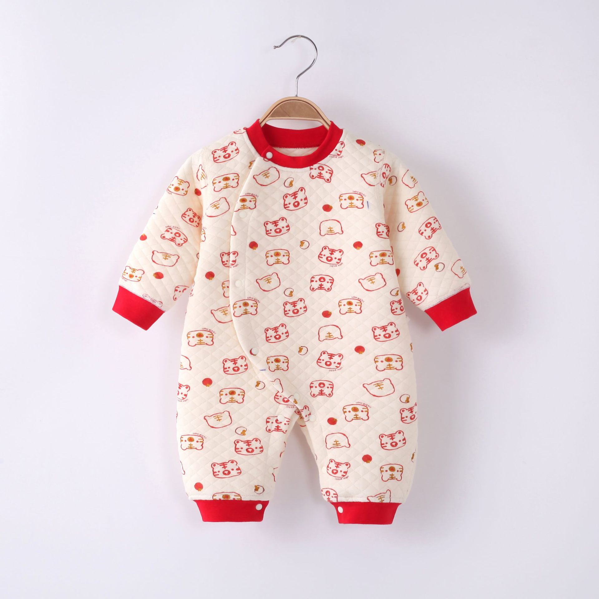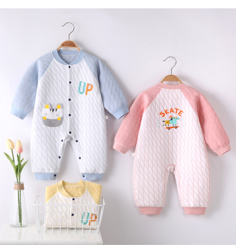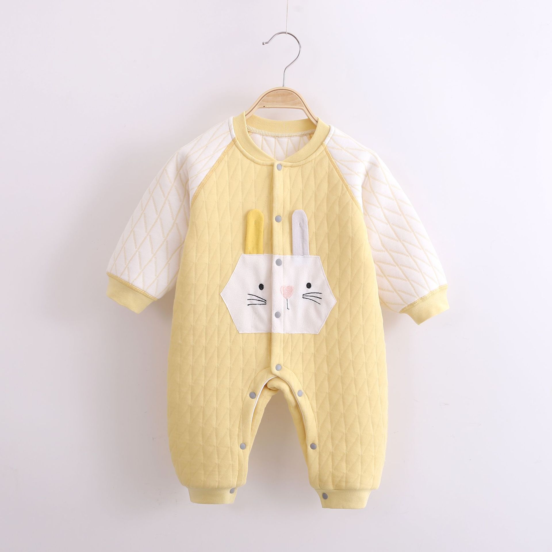 新款婴儿连体短袖衣服秋冬棉三层保暖无骨宝宝加厚爬服哈衣