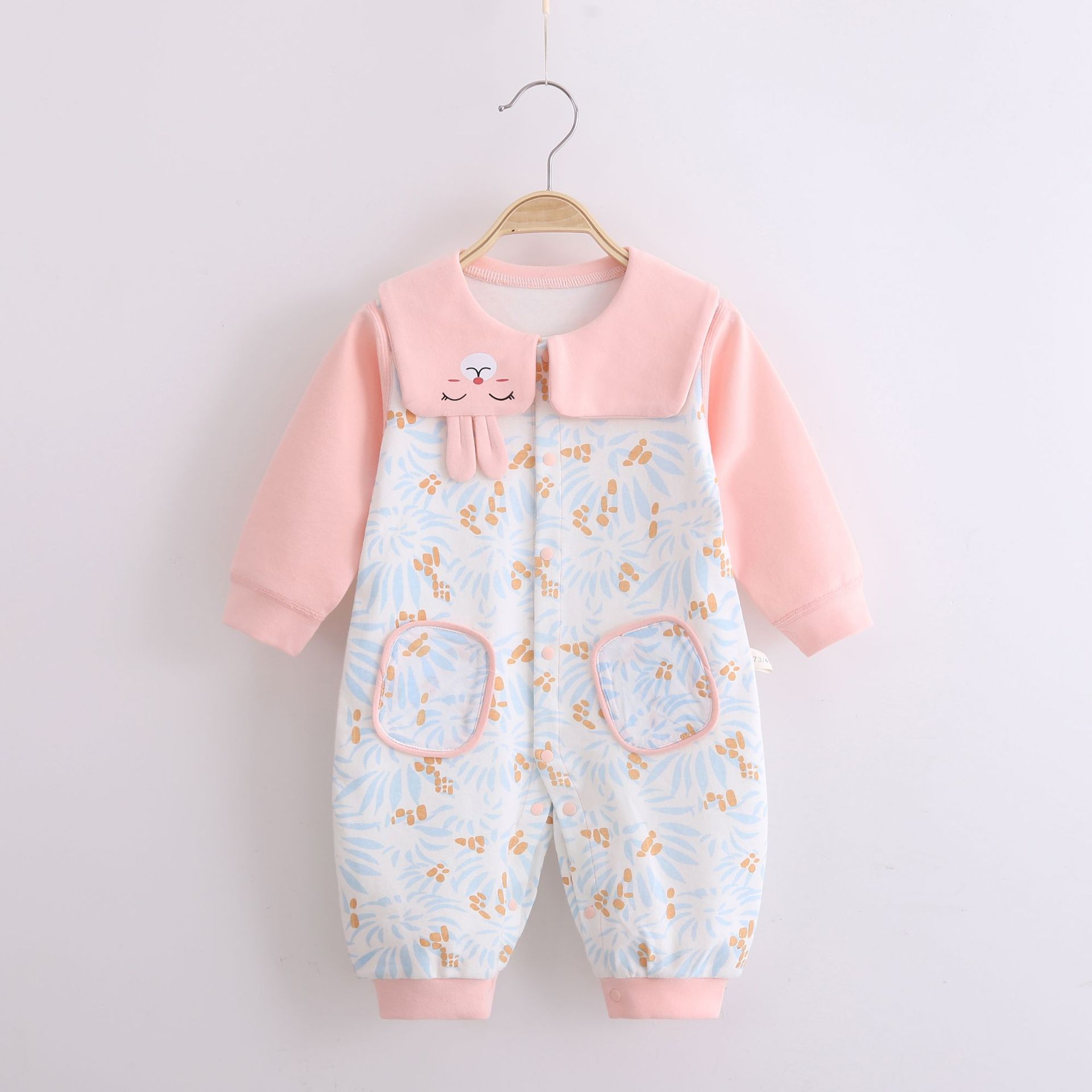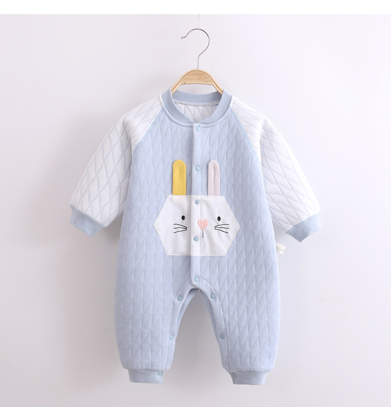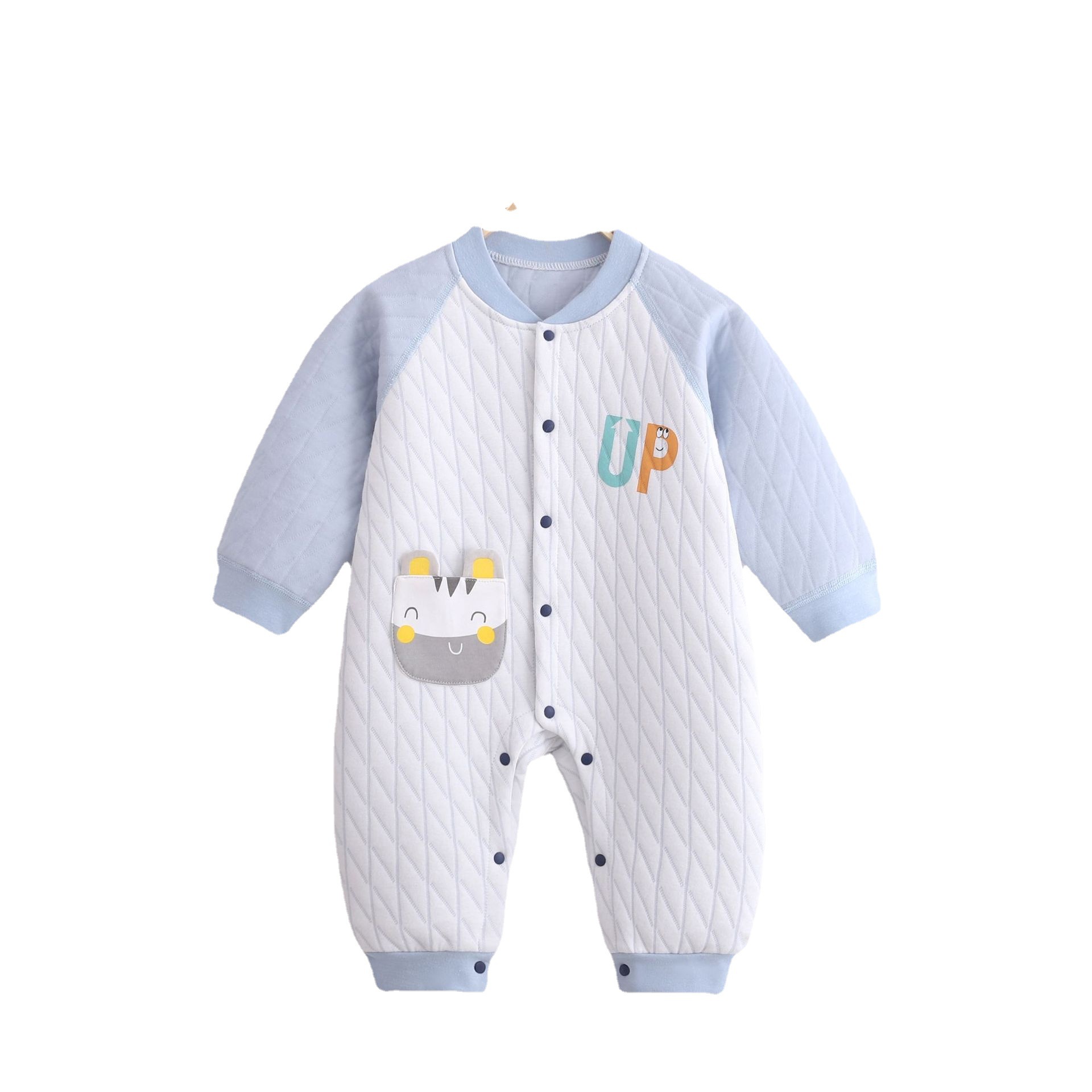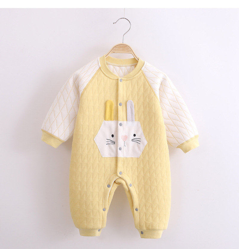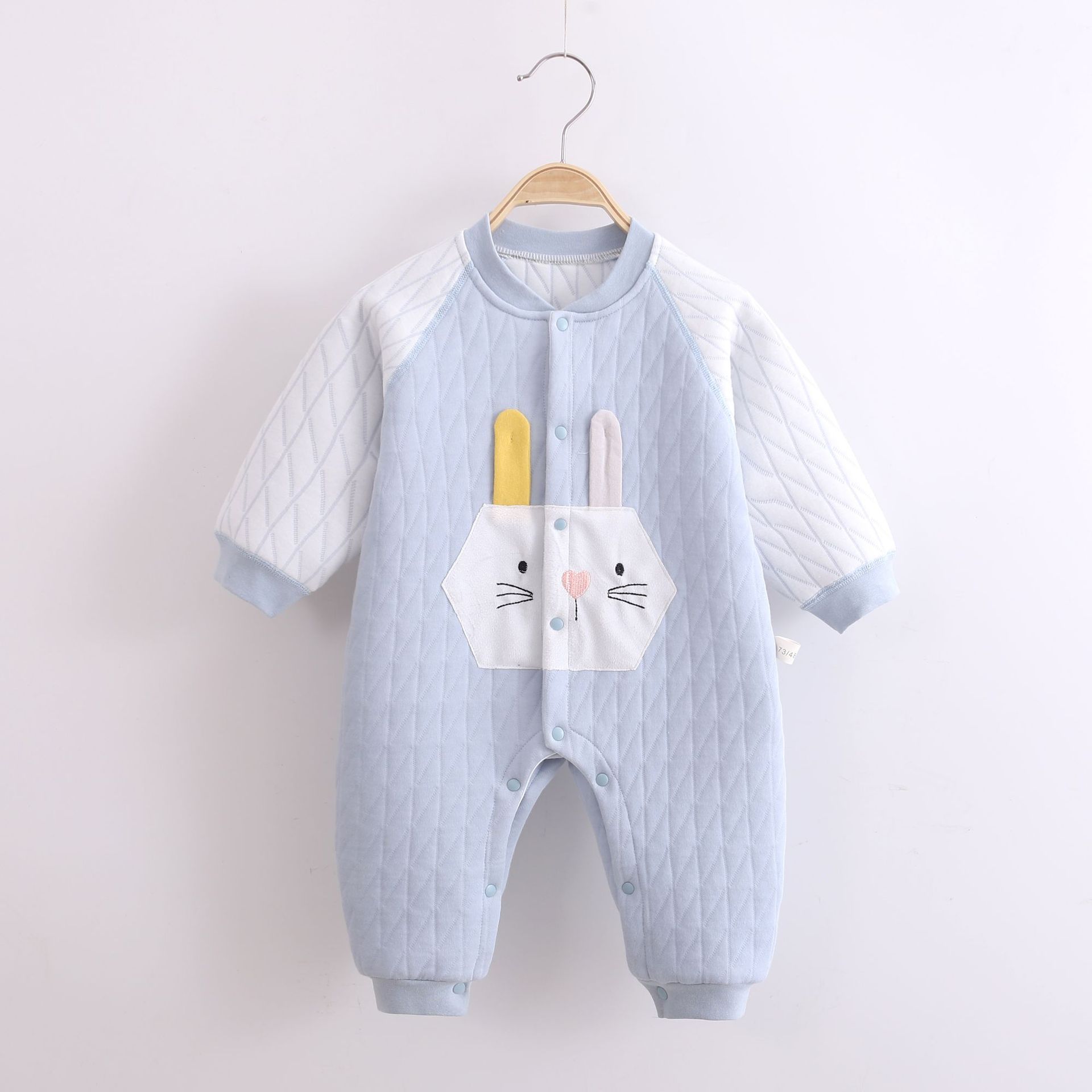 新款婴儿连体短袖衣服秋冬棉三层保暖无骨宝宝加厚爬服哈衣