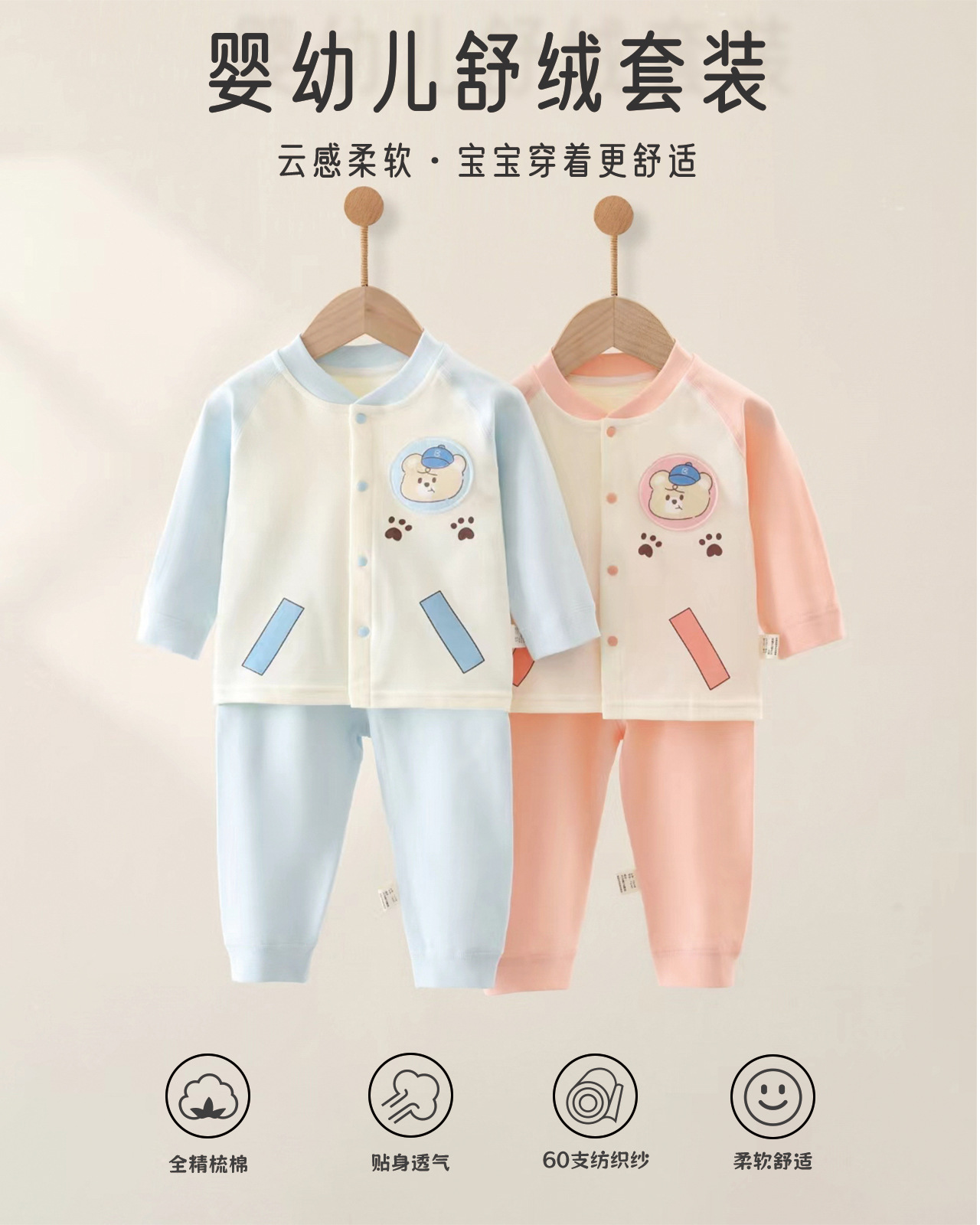 安阳童装舒绒面料纯棉无骨婴幼儿两件套男女宝宝长袖分体婴儿衣服