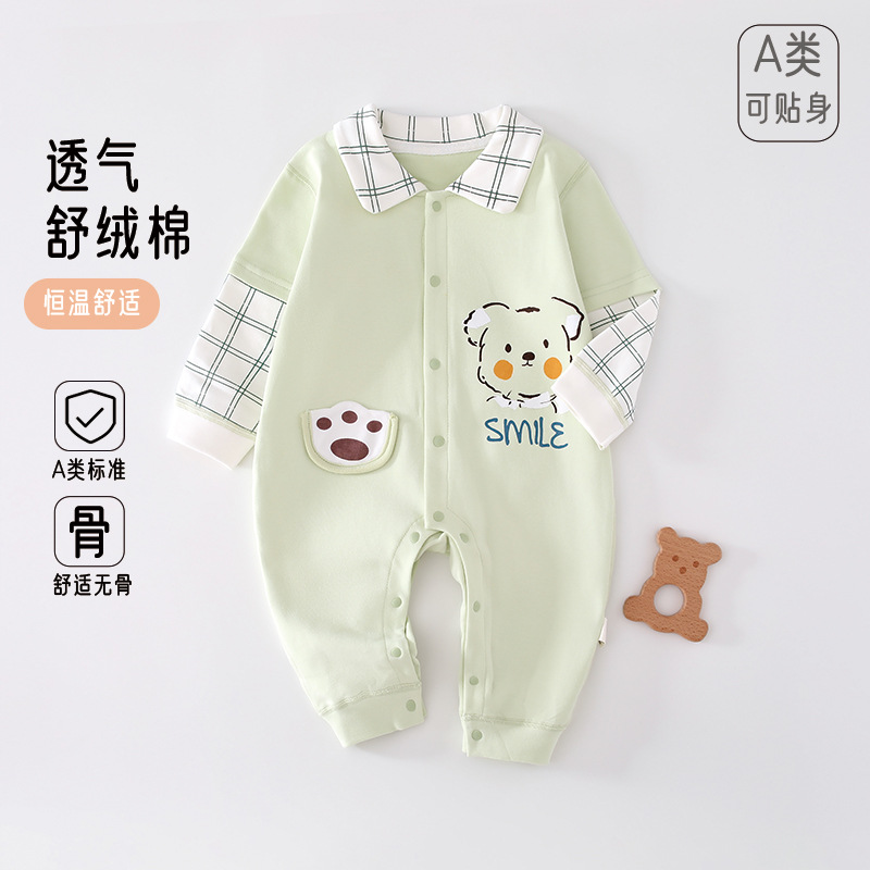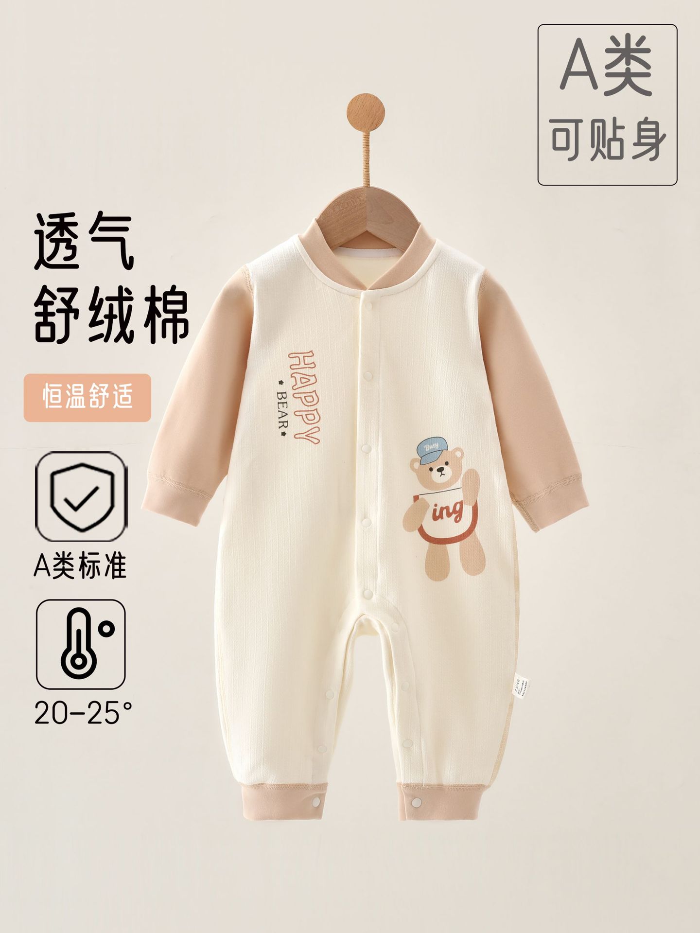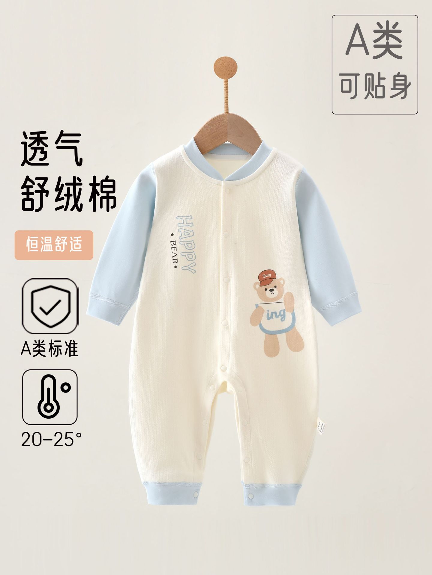 婴幼儿长袖连体衣哈衣宝宝舒绒纯棉无骨爬服初生四季睡衣外出家居