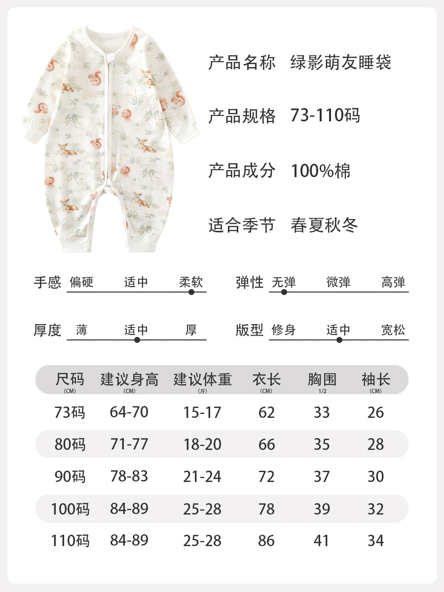 全棉婴儿睡袋a类四季款拉链新生儿防踢被宝宝睡衣棉无骨婴儿睡袋
