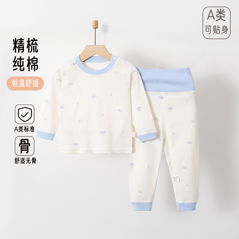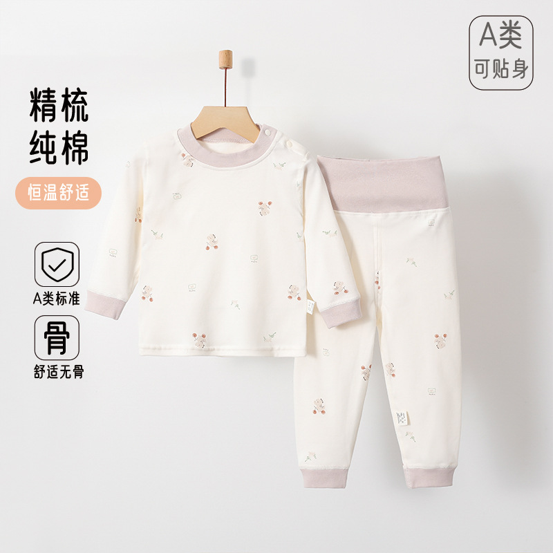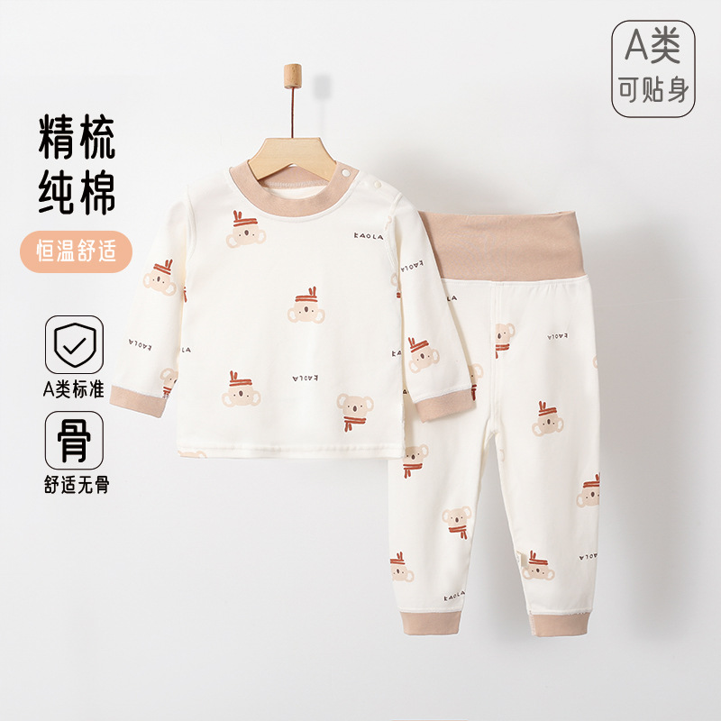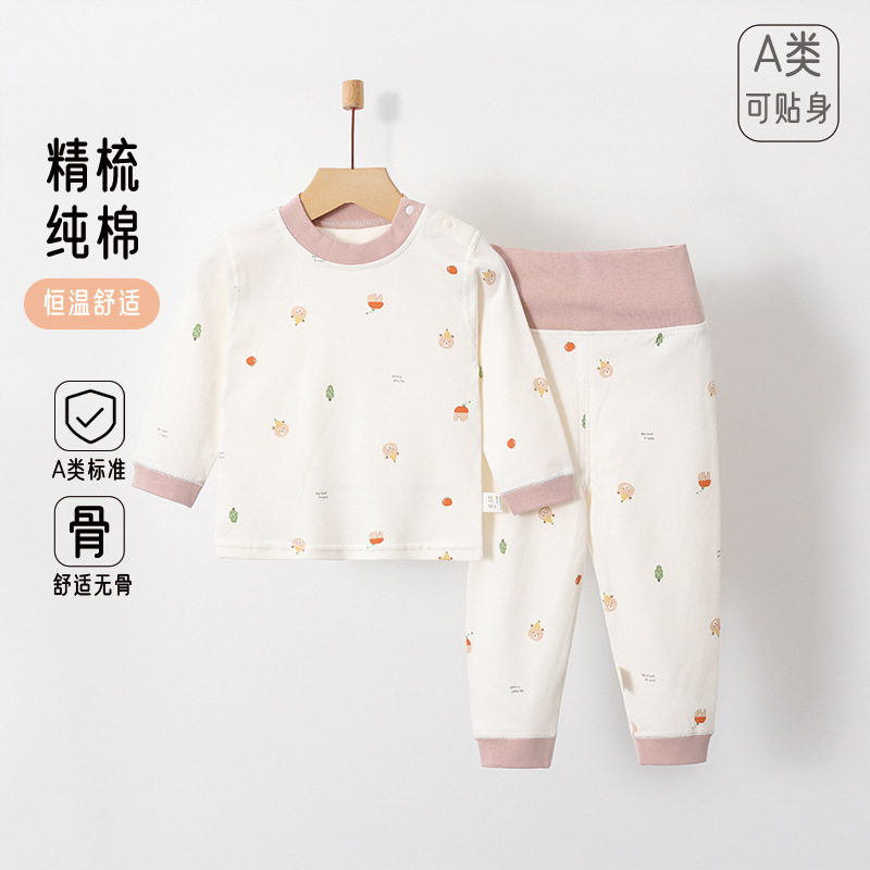 儿童纯棉无骨睡衣婴幼儿春秋分体套装护肚男女宝宝秋衣秋裤家居服