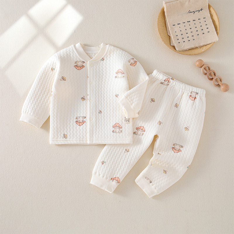 婴儿儿童秋冬新款纯棉立领三层保暖内衣套装男女宝宝夹棉打底睡衣