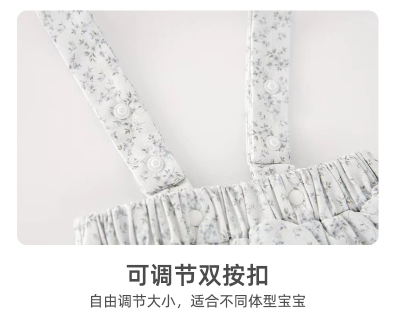 2025新款韩版0-1岁四季款a类纯棉宝宝碎花可爱花苞裤新生儿背带裤