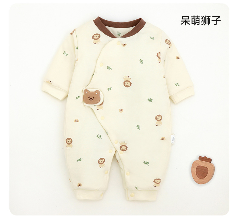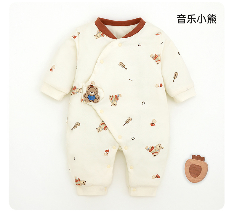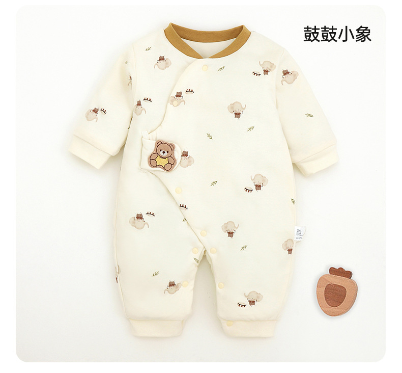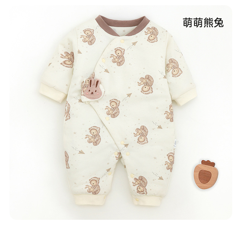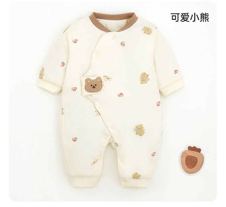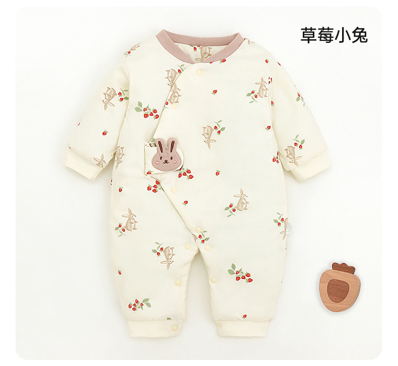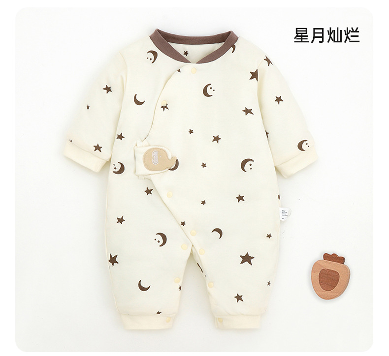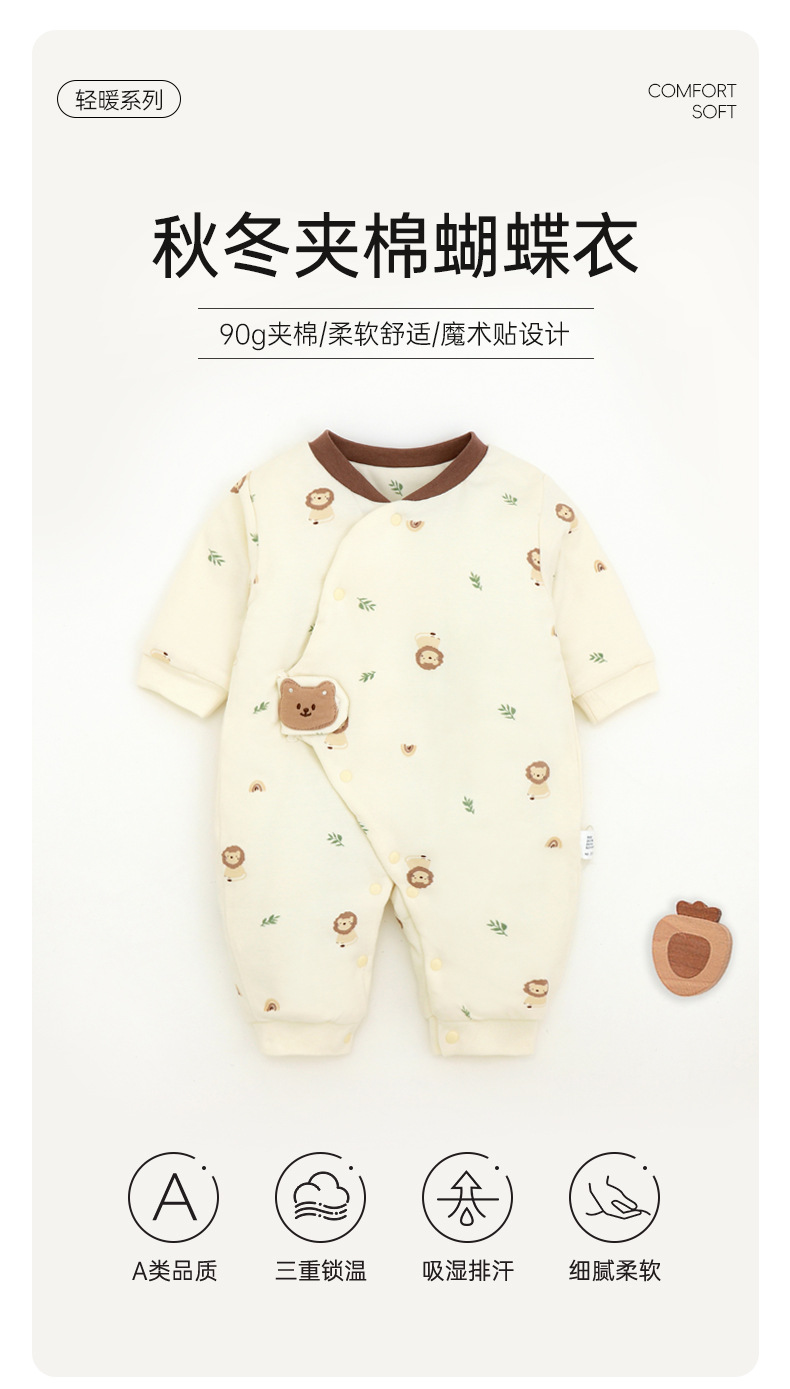 新生儿哈衣a类夹棉秋冬保暖宝宝90g棉爬服婴幼儿衣服薄棉蝴蝶衣