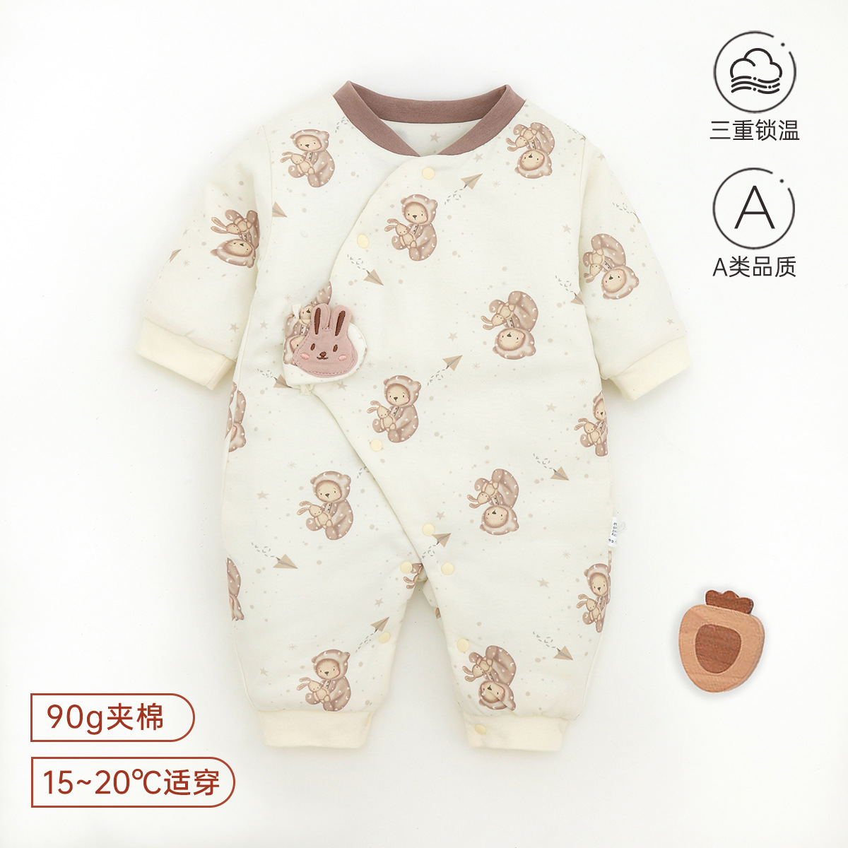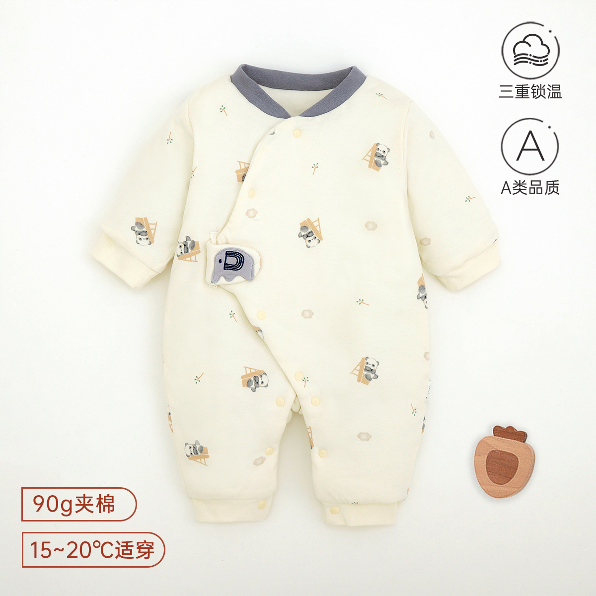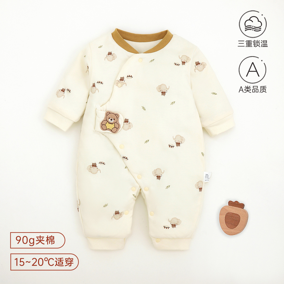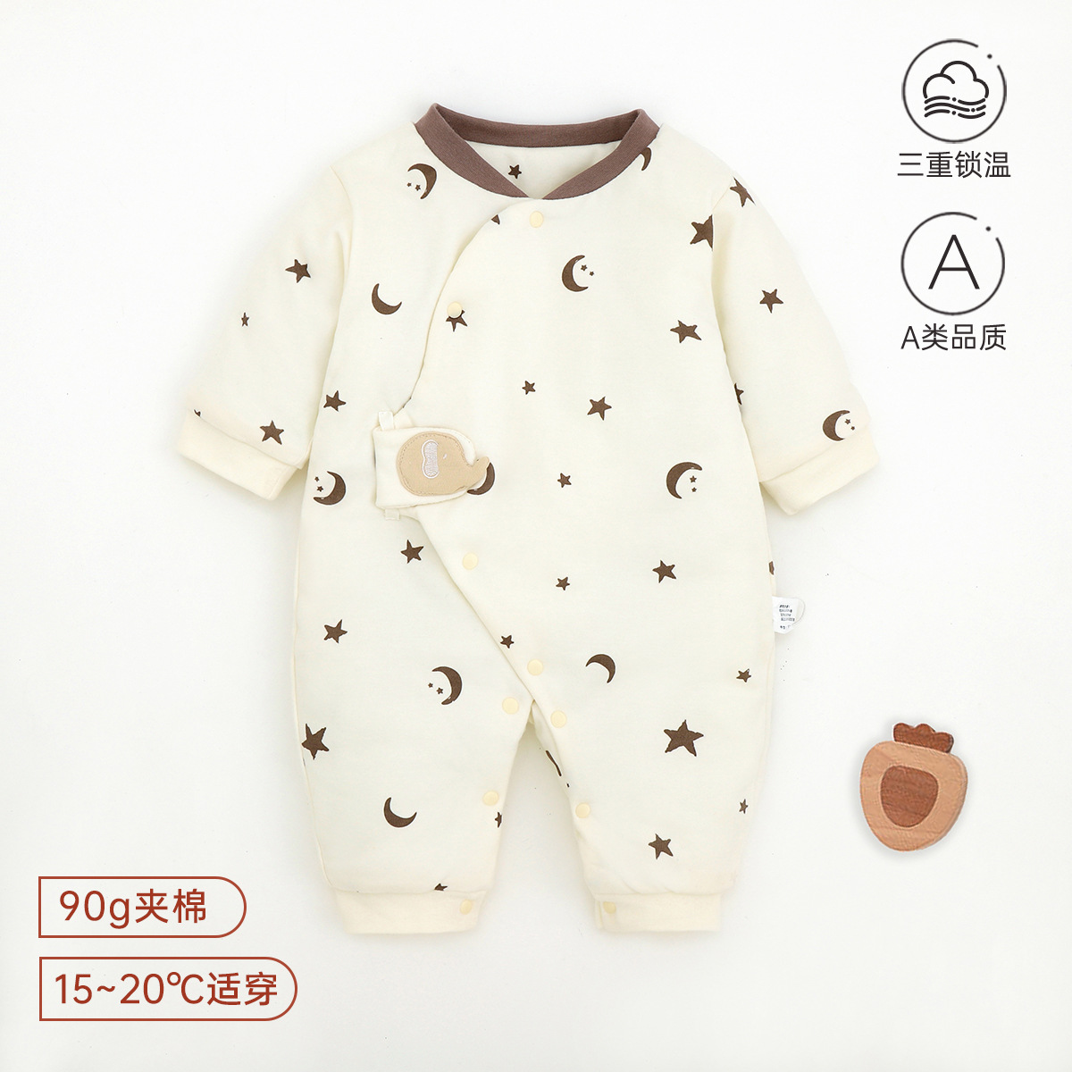 新生儿哈衣a类夹棉秋冬保暖宝宝90g棉爬服婴幼儿衣服薄棉蝴蝶衣
