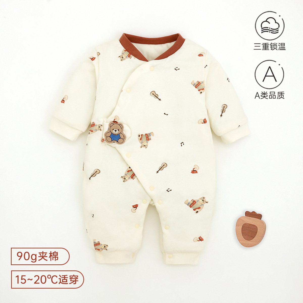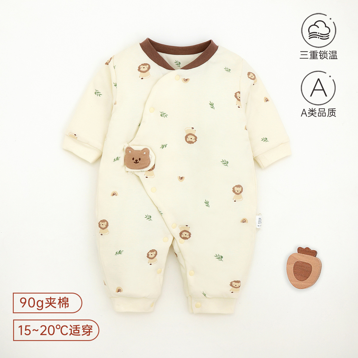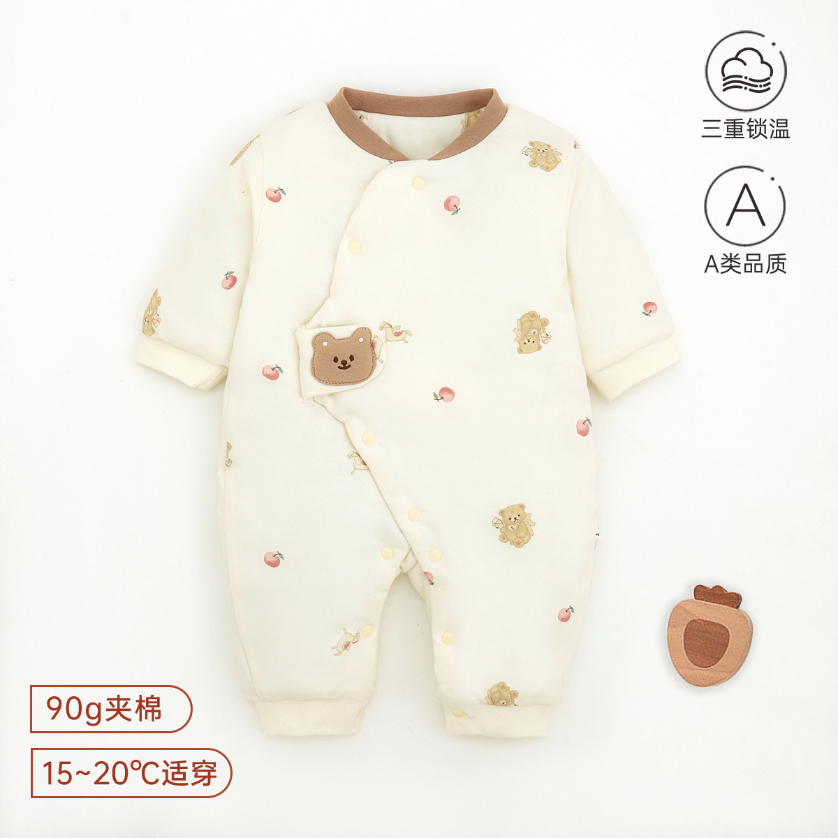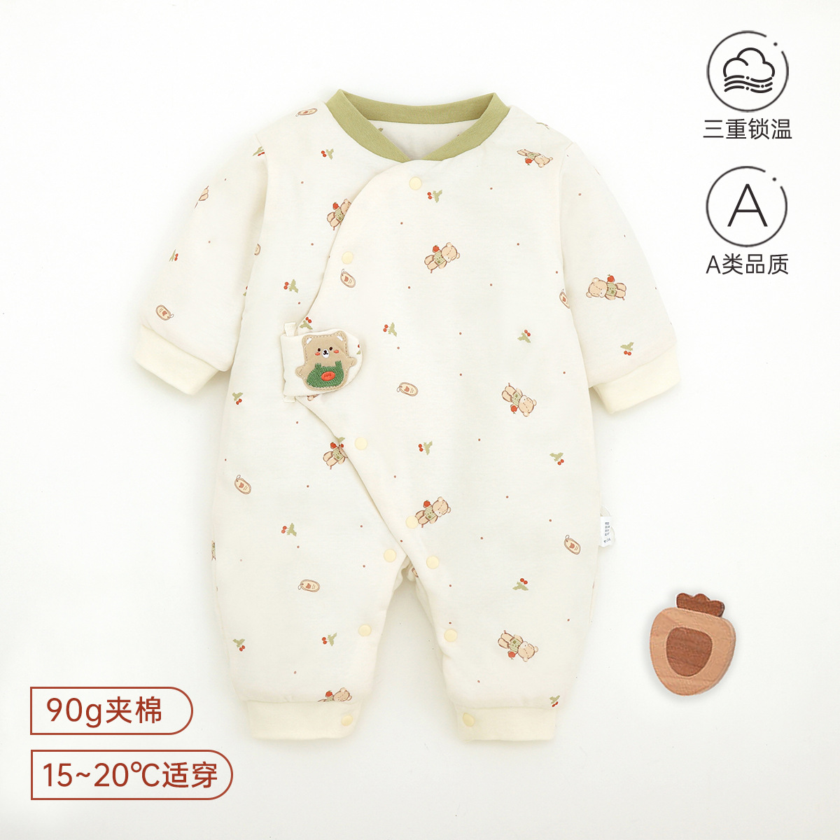 新生儿哈衣a类夹棉秋冬保暖宝宝90g棉爬服婴幼儿衣服薄棉蝴蝶衣